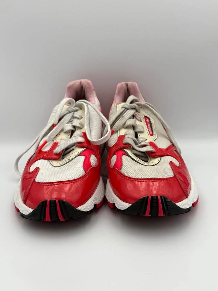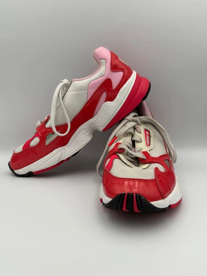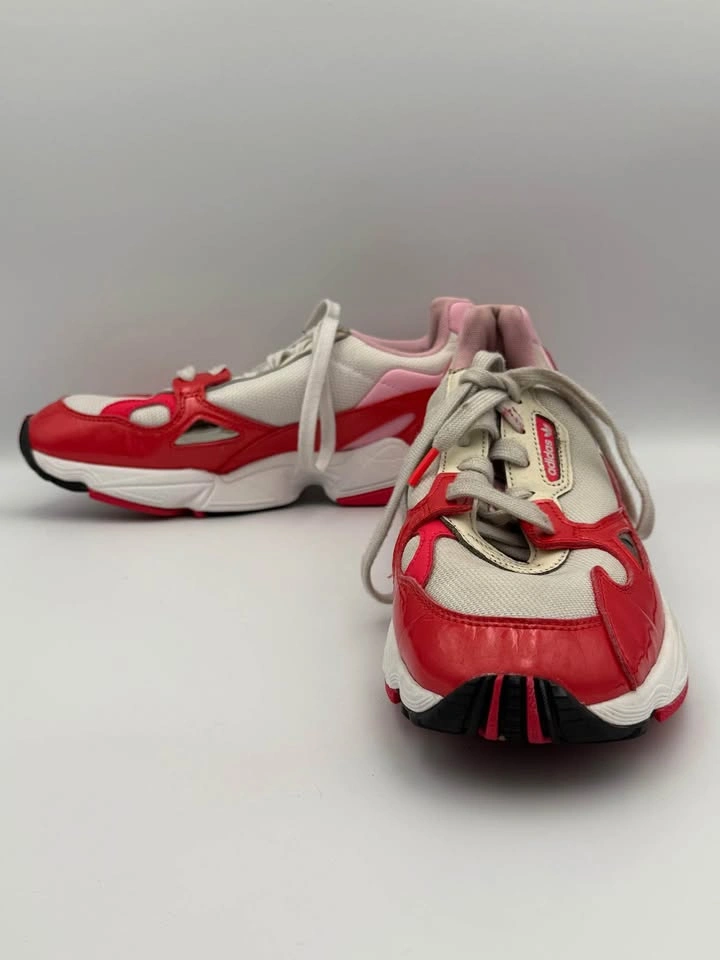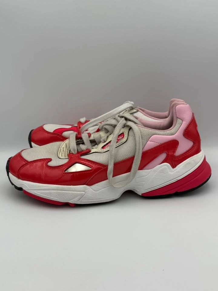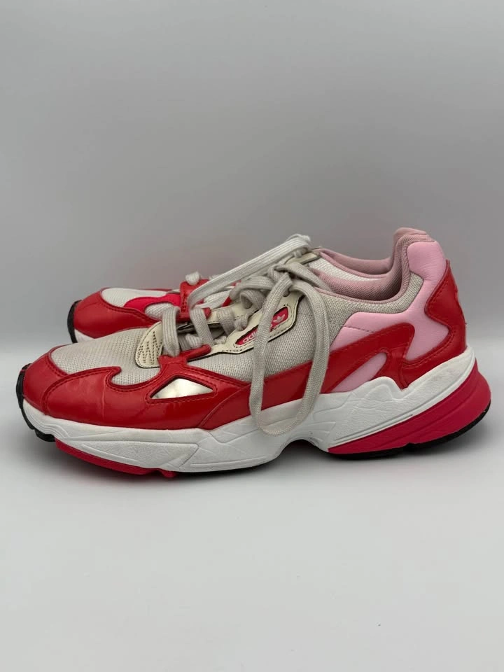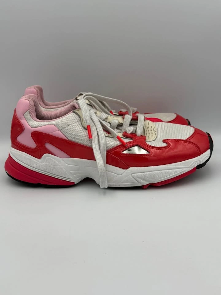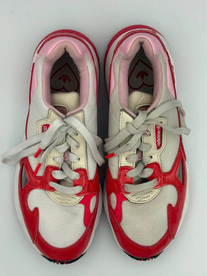 Show off bold style with these Adidas Falcon “Valentine” Sneakers, designed with a playful twist and retro-inspired chunky silhouette. Perfect for everyday wear, these sneakers blend comfort, personality, and unique style. ✅ Brand: Adidas ✅ Model: Falcon “Valentine” ✅ Colorway: White/Red/Pink ✅ Size: Women’s 10 ✅ Condition: Good – gently used with minor visible flaws (see photos for details) ✅ Style: Lifestyle / Retro / Casual These sneakers are perfect for fashion-forward sneaker lovers looking for a standout pair with personality at a great value.