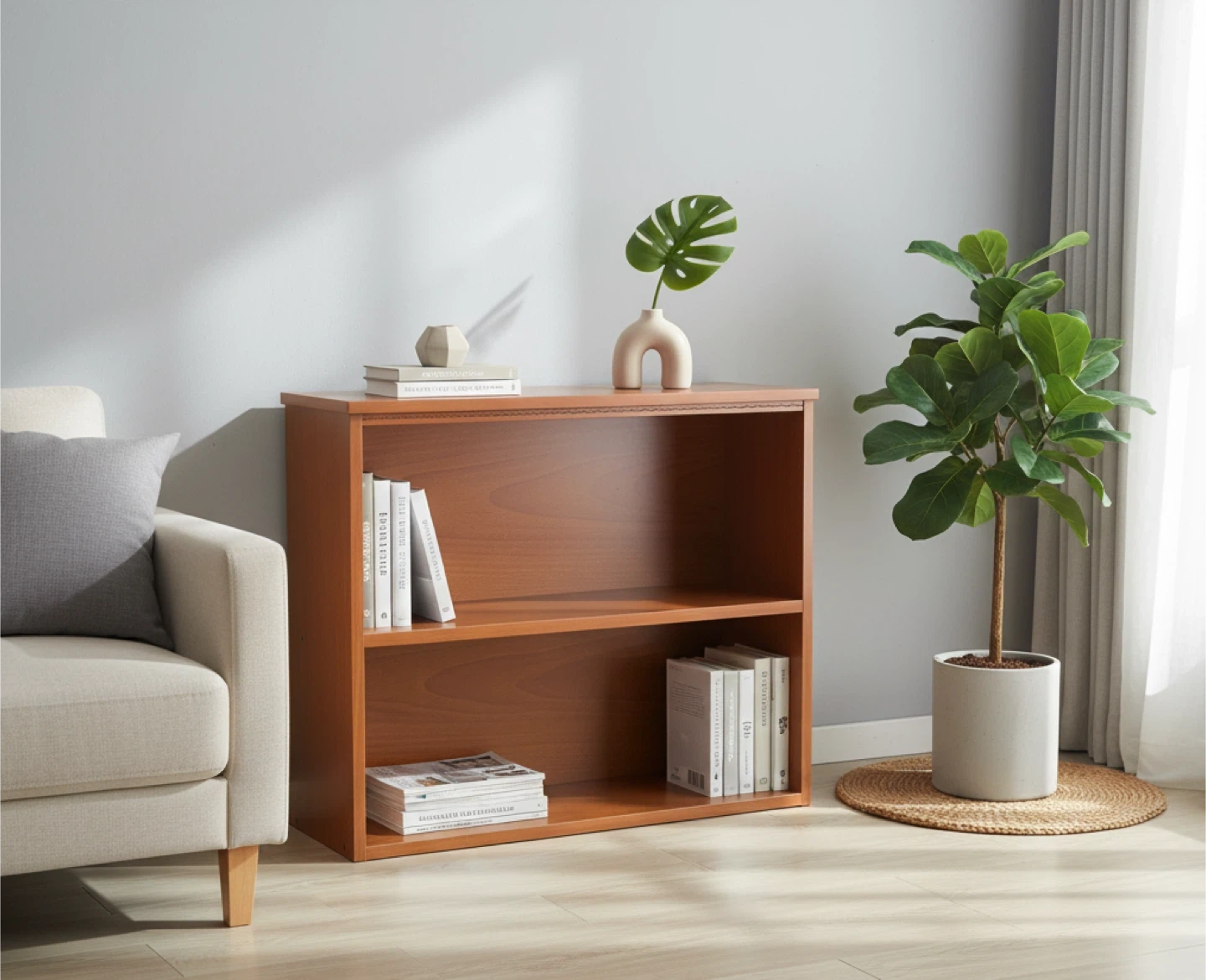 Selling a wood bookcase that's in great condition! It has two shelves and a nice wood finish. You can adjust the height to meet your needs. Perfect for books, plants, or decor!