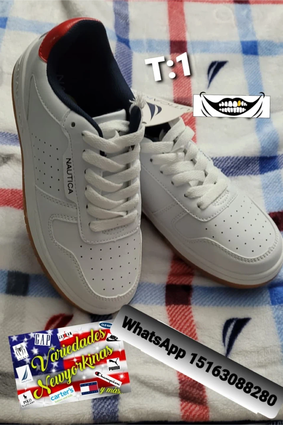 Selling a pair of Nautica white sneakers. They feature a red accent on the heel and a navy blue interior. The outsoles are a light brown color. These are in great condition!