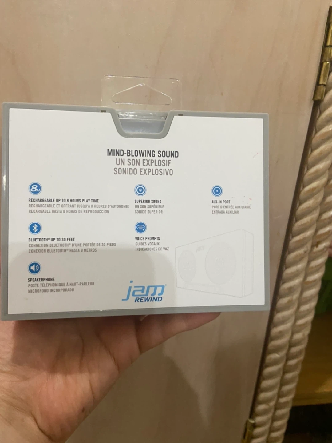 Selling a brand new Jam Rewind Bluetooth Wireless Stereo Speaker! It features: - Up to 8 hours of play time - Superior sound - Aux-in port - Bluetooth up to 30 feet - Voice prompts
