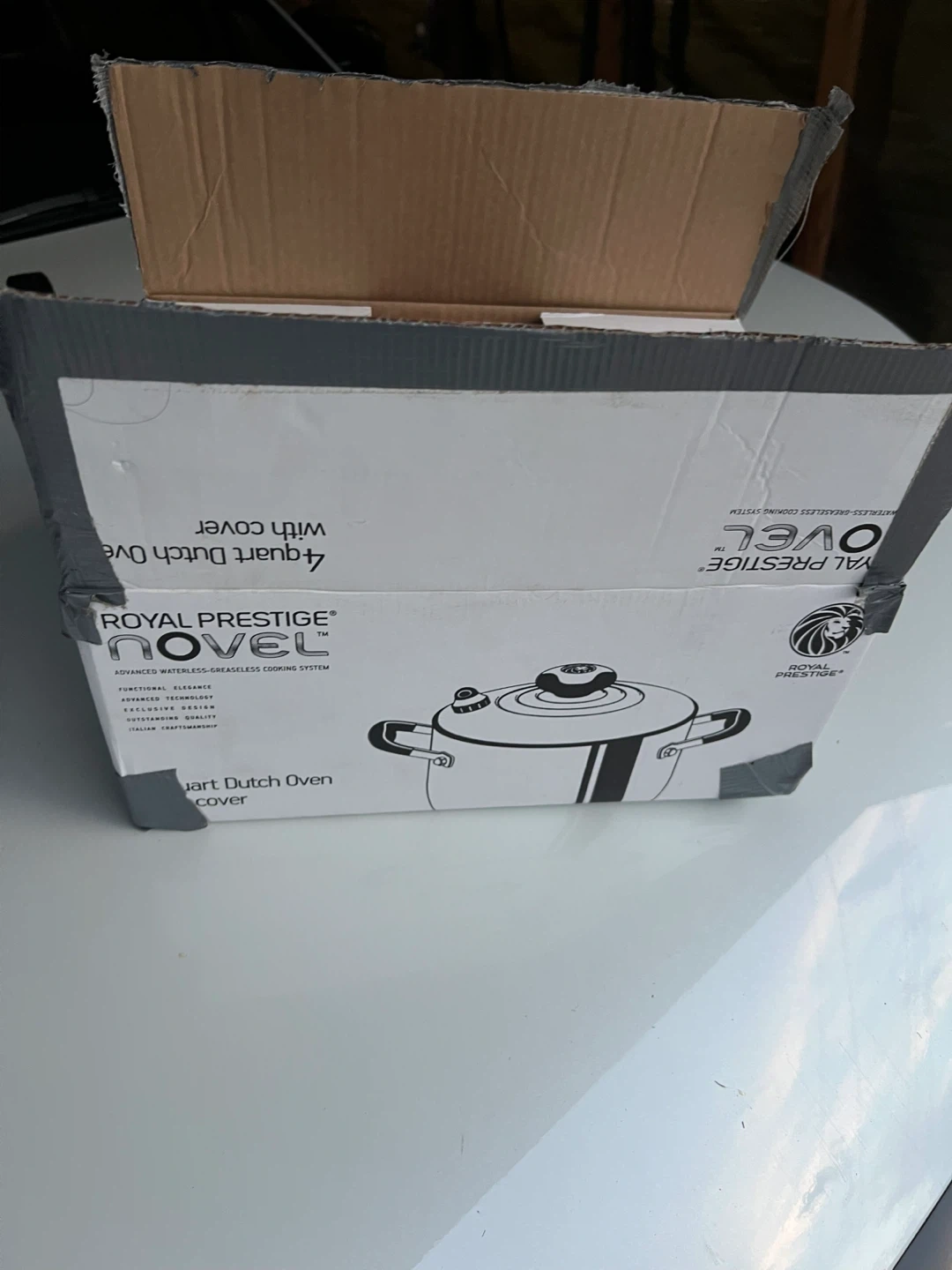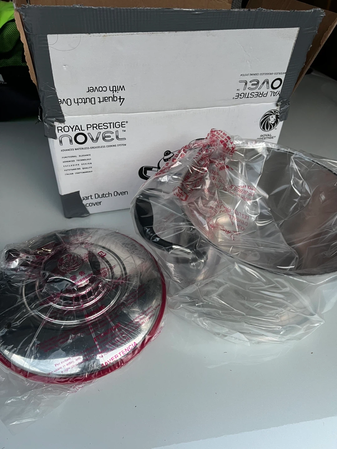 I'm selling a brand new Royal Prestige Novel 4-quart Dutch Oven with cover! It's an advanced waterless-greaseless cooking system. The box is included, and it's ready for a new home