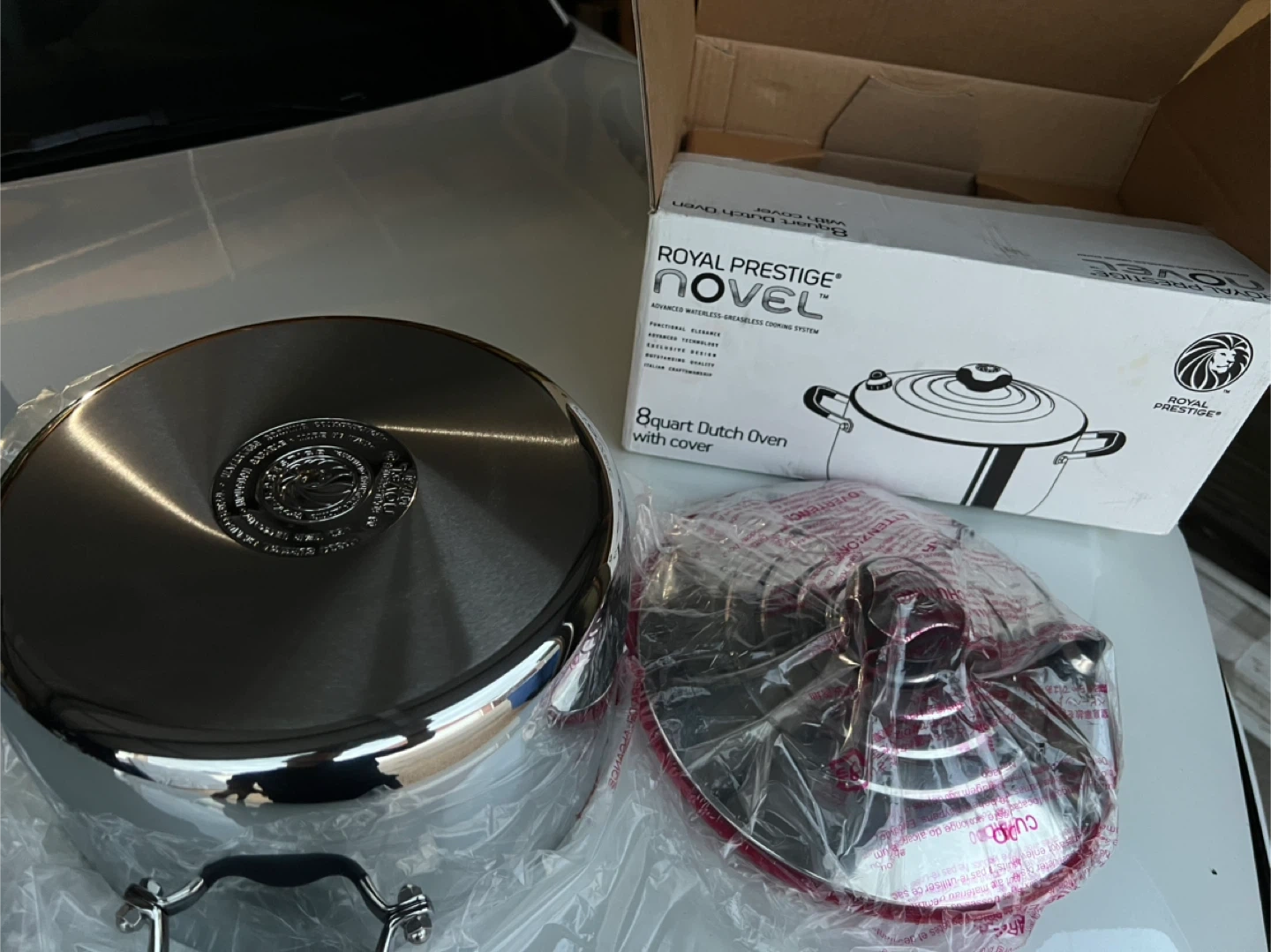 Selling a brand new Royal Prestige Novel 8-quart Dutch Oven with cover! It's still in the original packaging and has never been used. This advanced waterless-greaseless cooking system offers functional elegance and exceptional quality with Italian craftsmanship. The box is included!