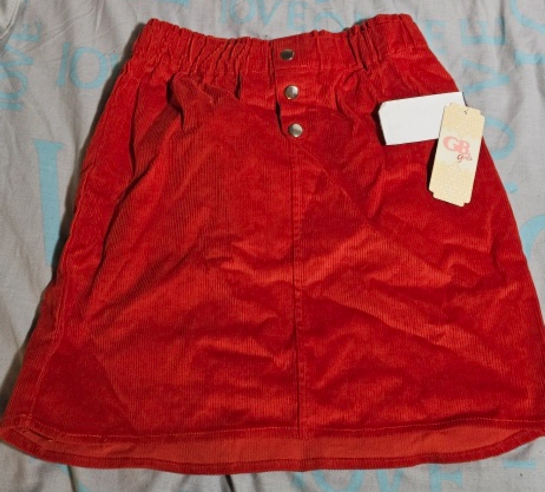This is a cute GB Girls corduroy skirt in size L. The skirt is a vibrant orange color and features button detailing. The original price was $36. It's in great condition!