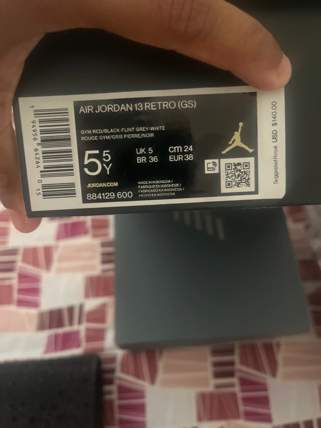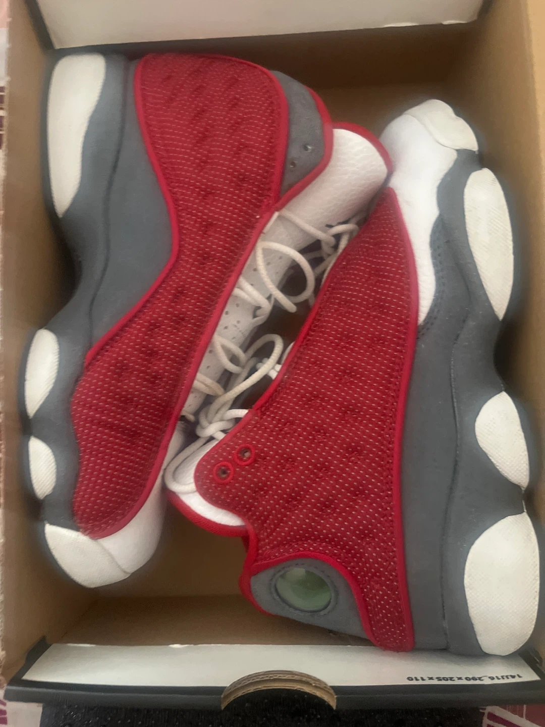 Selling a pair of Air Jordan 13 Retro (GS) sneakers in size 5.5Y. The colorway is Gym Red/Black-Flint Grey-White. These come with the original box and are in great condition!