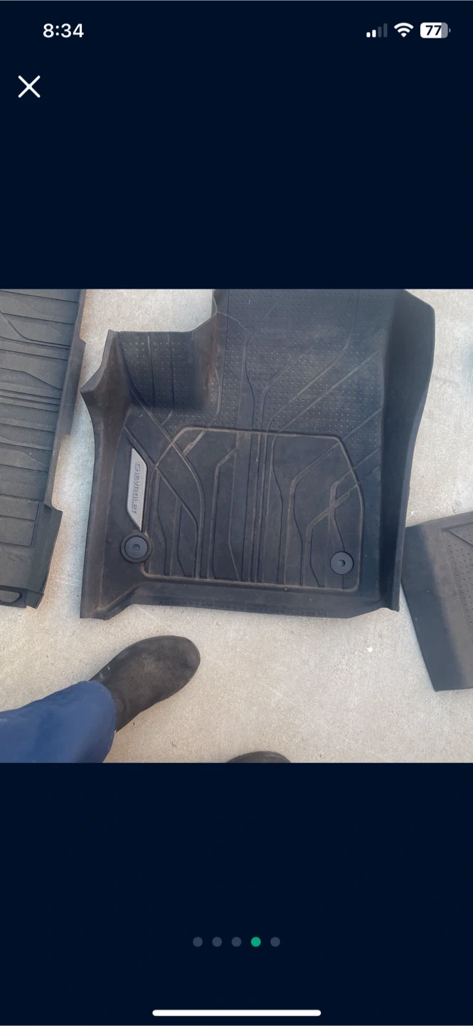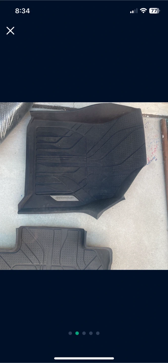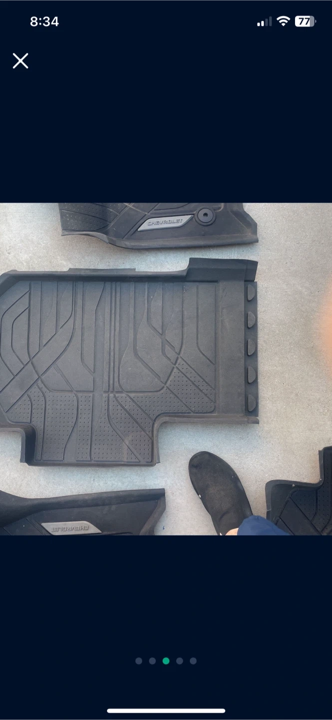 Selling a set of black rubber floor mats for a Chevrolet vehicle. They show some signs of use, but are still in good condition and ready to protect your car's interior from dirt and wear