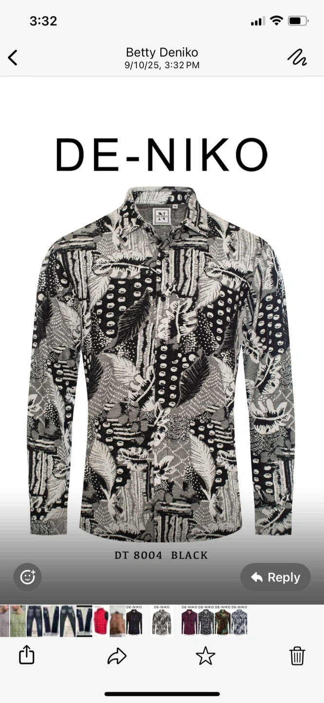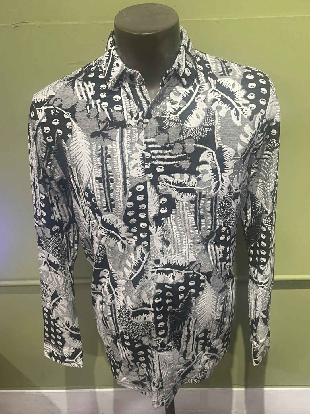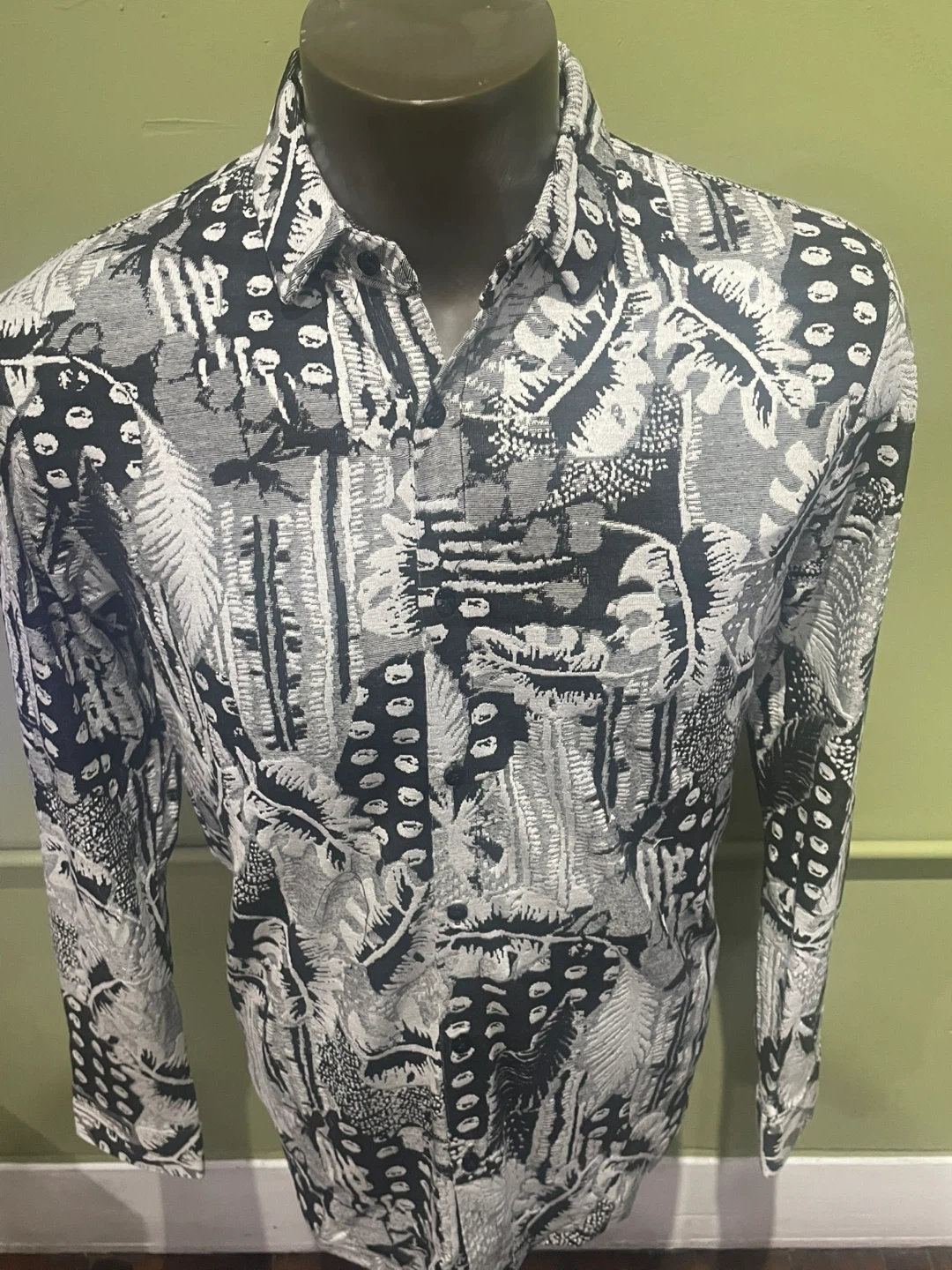 Selling a De-Niko DT 8004 shirt with a unique black and white pattern. It's in great condition and ready for a new home. Perfect for adding a stylish touch to your wardrobe! Stretchy regular fit