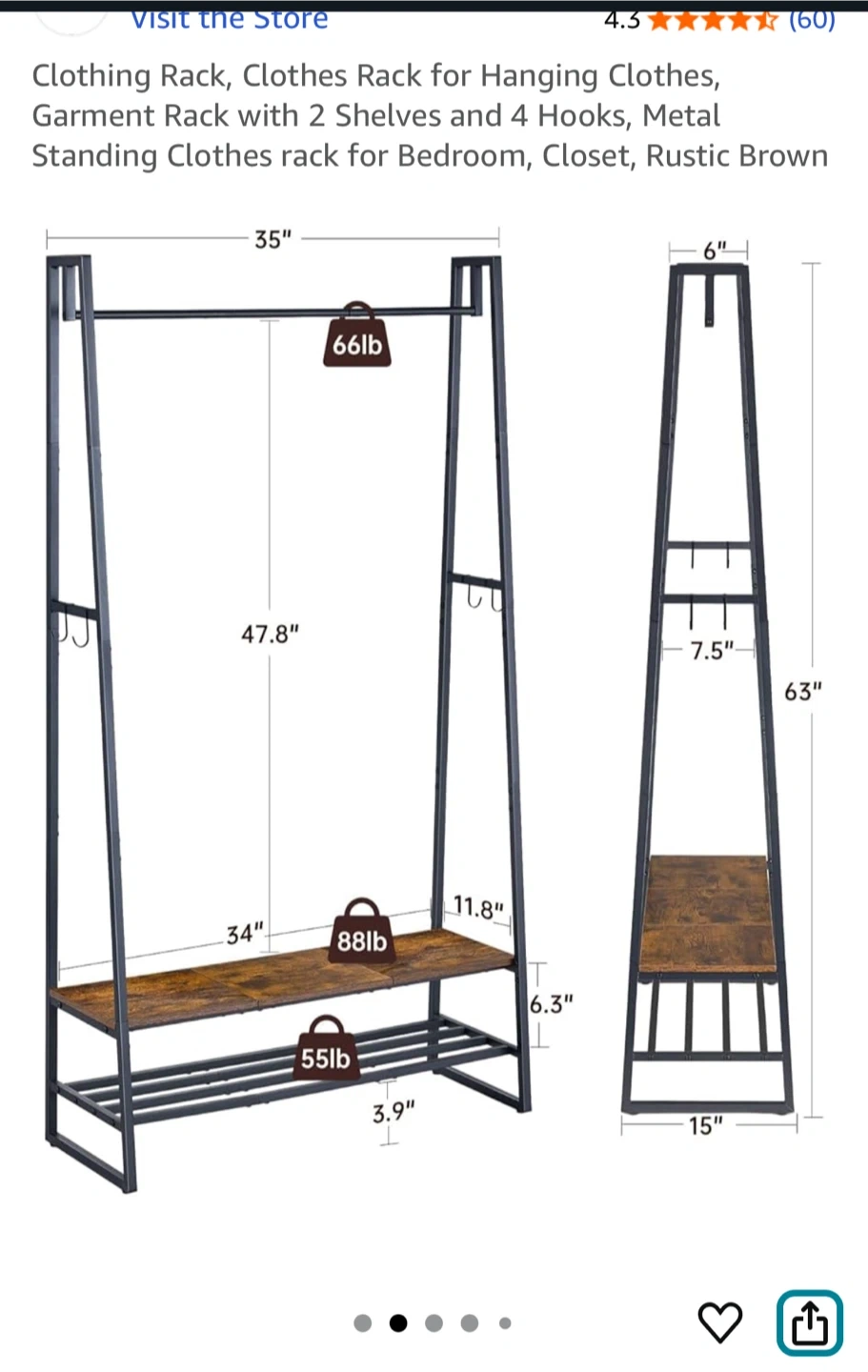 Clothing Rack with Shelves & Hooks - Rustic Brown