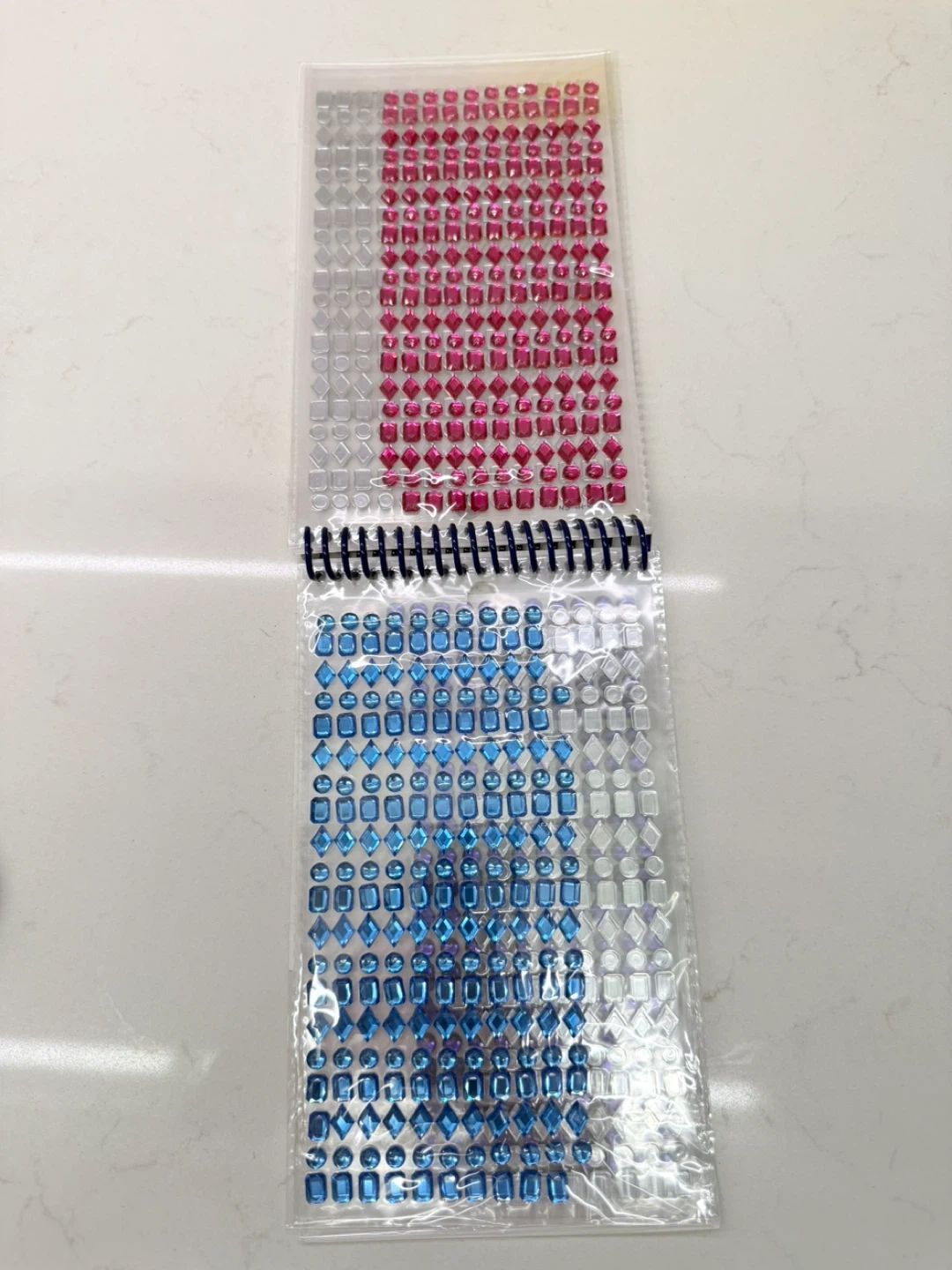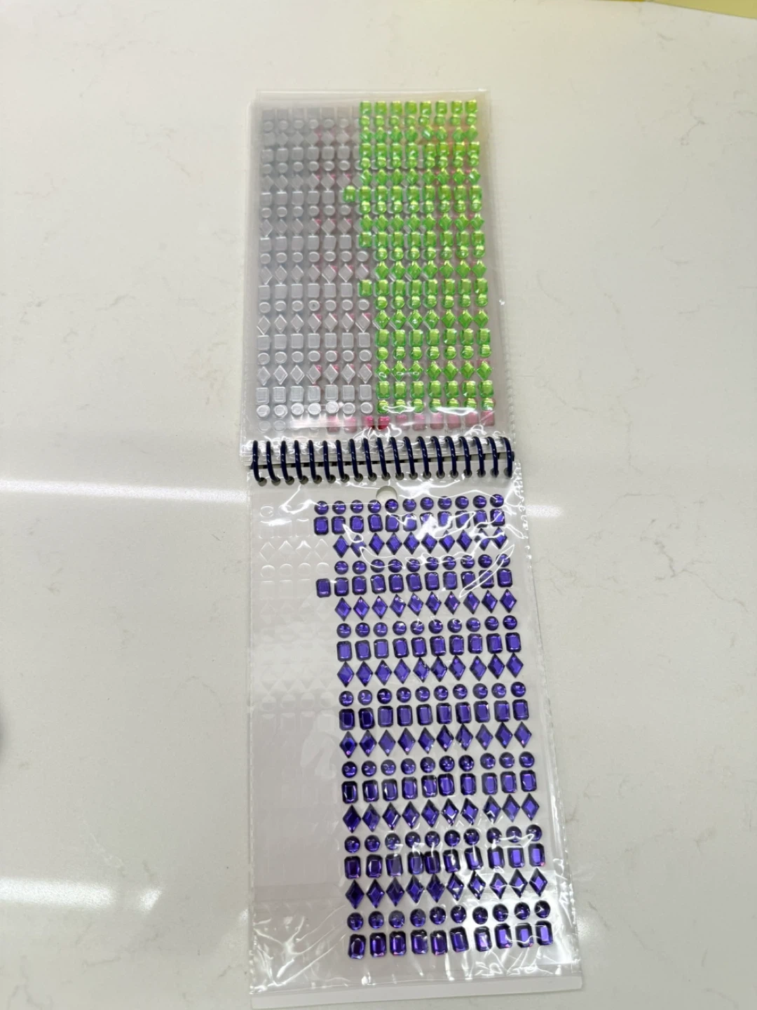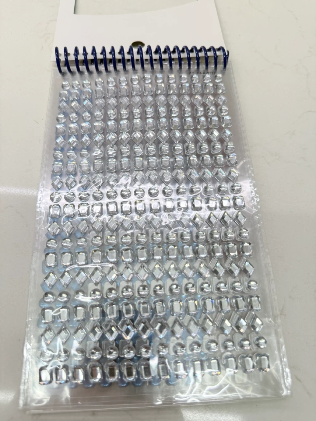 1000+Add a touch of sparkle to your crafts with this ArtSkills Self-Stick Gemstone Variety Pack! It's perfect for adding a glitzy look to home decor, gifts, and more. This pack includes 1,400 self-stick gemstones in a variety of colors Missing a few columns in each color except clear crystal!