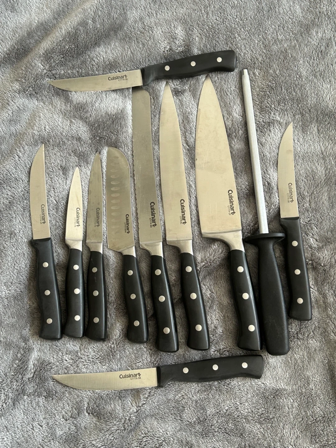 Selling a Cuisinart 11 piece knife set! Includes a variety of knives and a sharpening steel to keep your blades in top condition