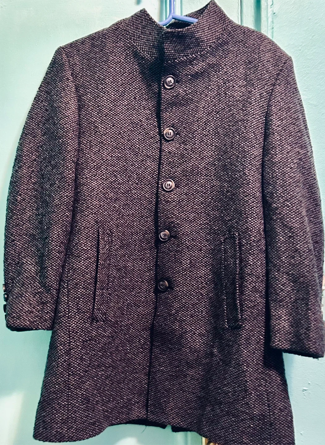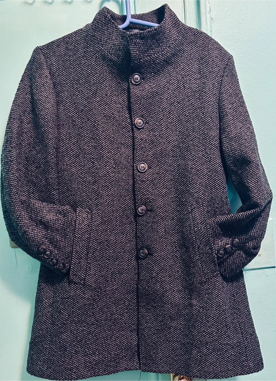 Selling a stylish men's overcoat, perfect for cooler weather. It's a wool blend material with a button-up front and a sleek design. It's in great condition and ready for a new home!
