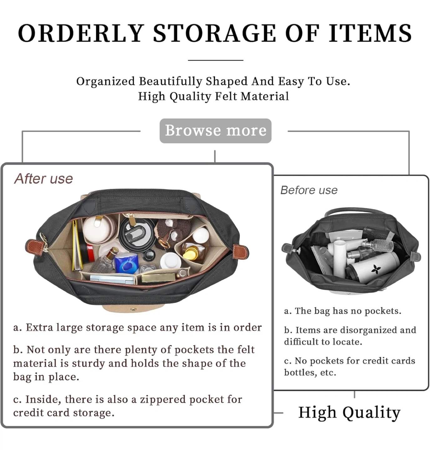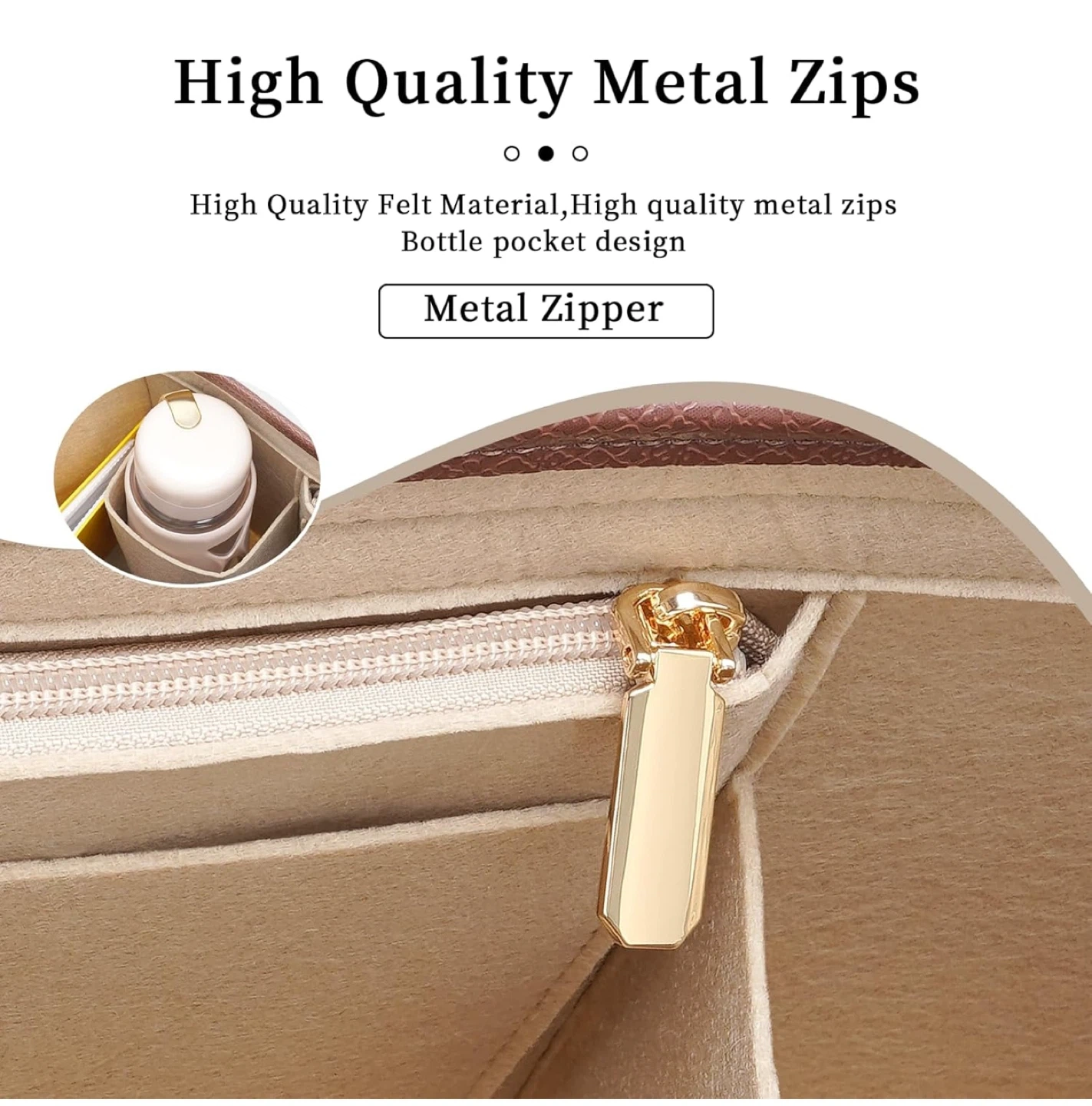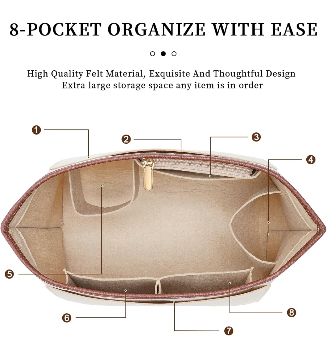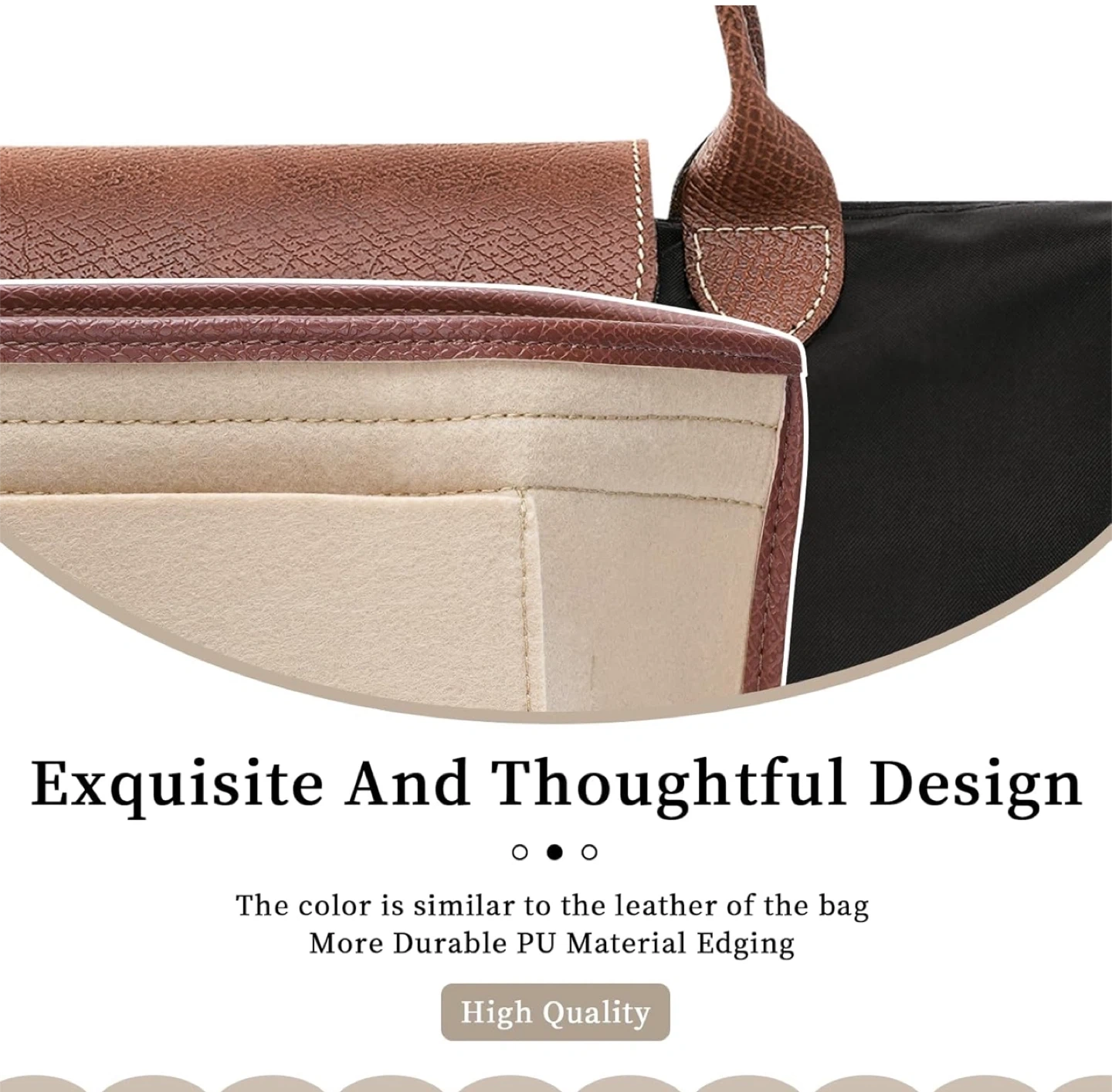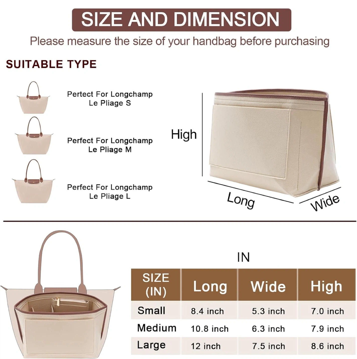 Handbag Leather edge Longchamp Organizer Insert with Cup Holder Tote Organize(Beige, Large)