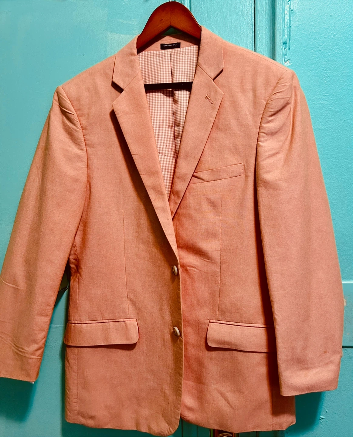 Selling a men's blazer in a unique pink color! It's in great condition and ready to add a pop of color to your wardrobe