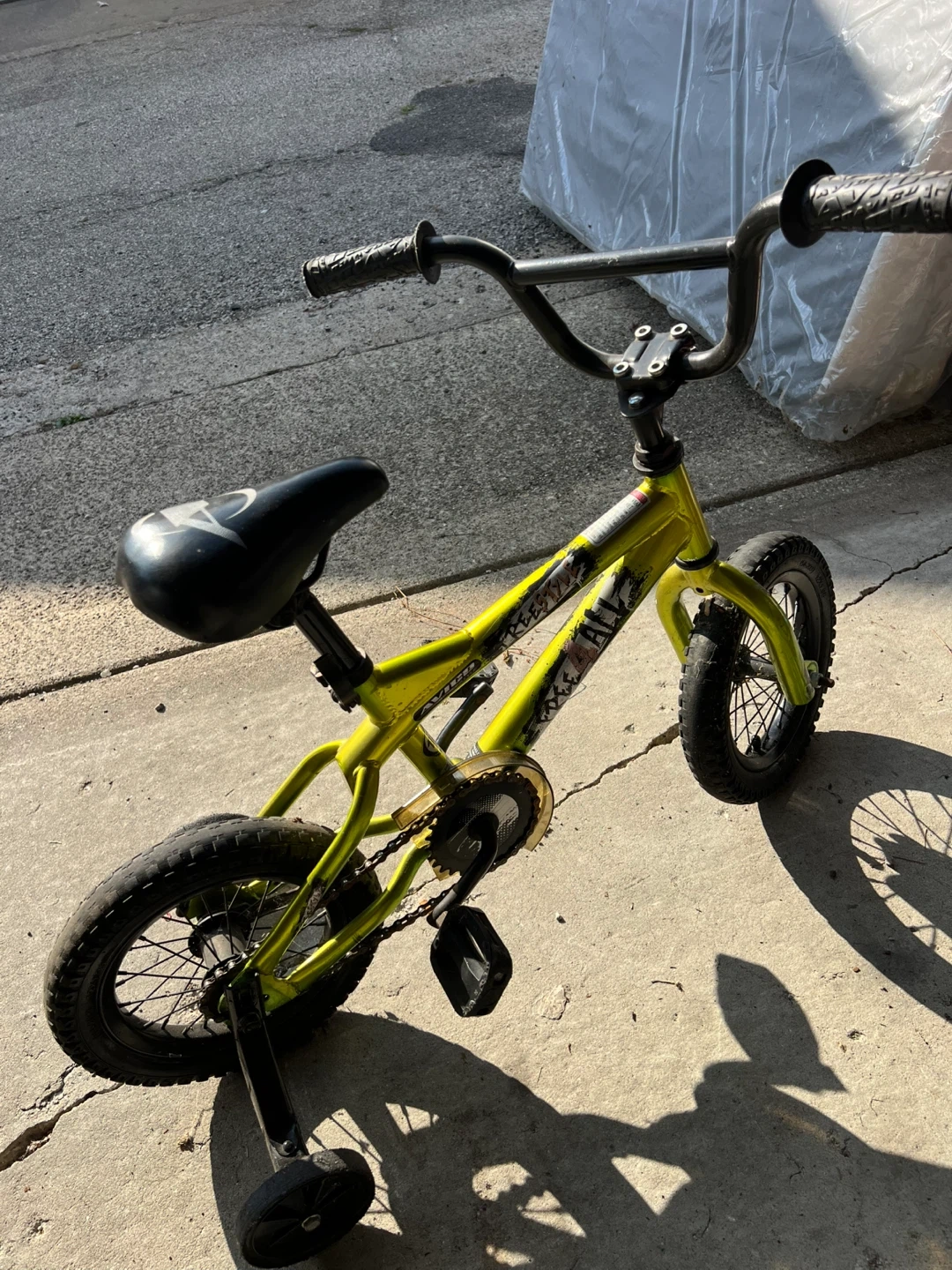 Selling a used Avigo 12-inch kids bike. It's in good condition and comes with training wheels. Great for kids learning to ride!