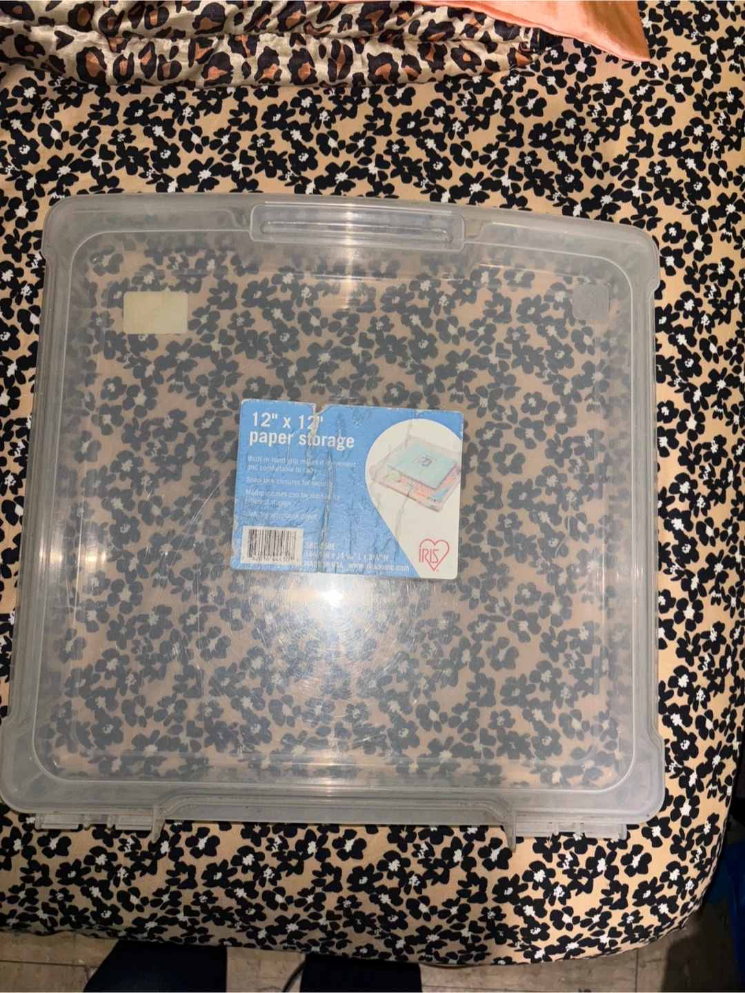 Selling a clear IRIS 12" x 12" paper storage container! It has a built-in hand grip for easy carrying and snap lock closures to keep everything secure. Multiple cases can be stacked for efficient storage