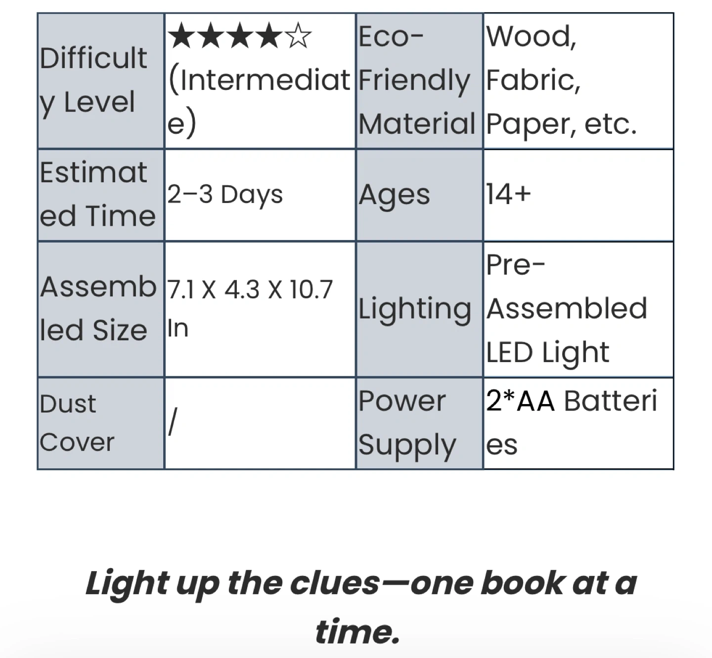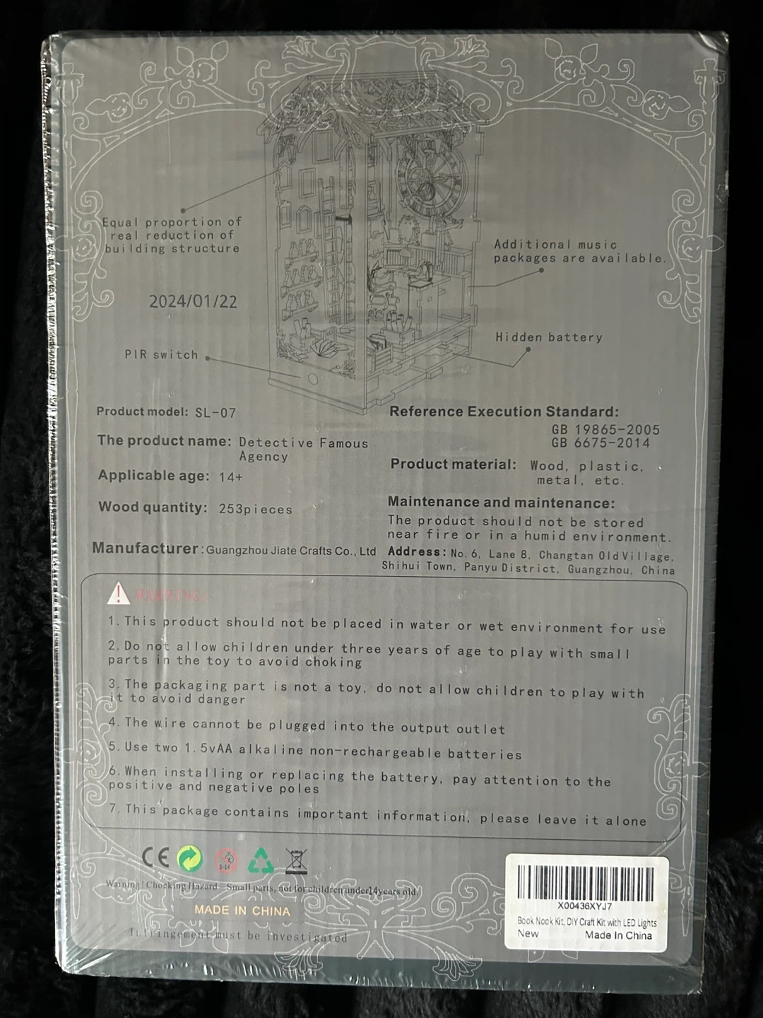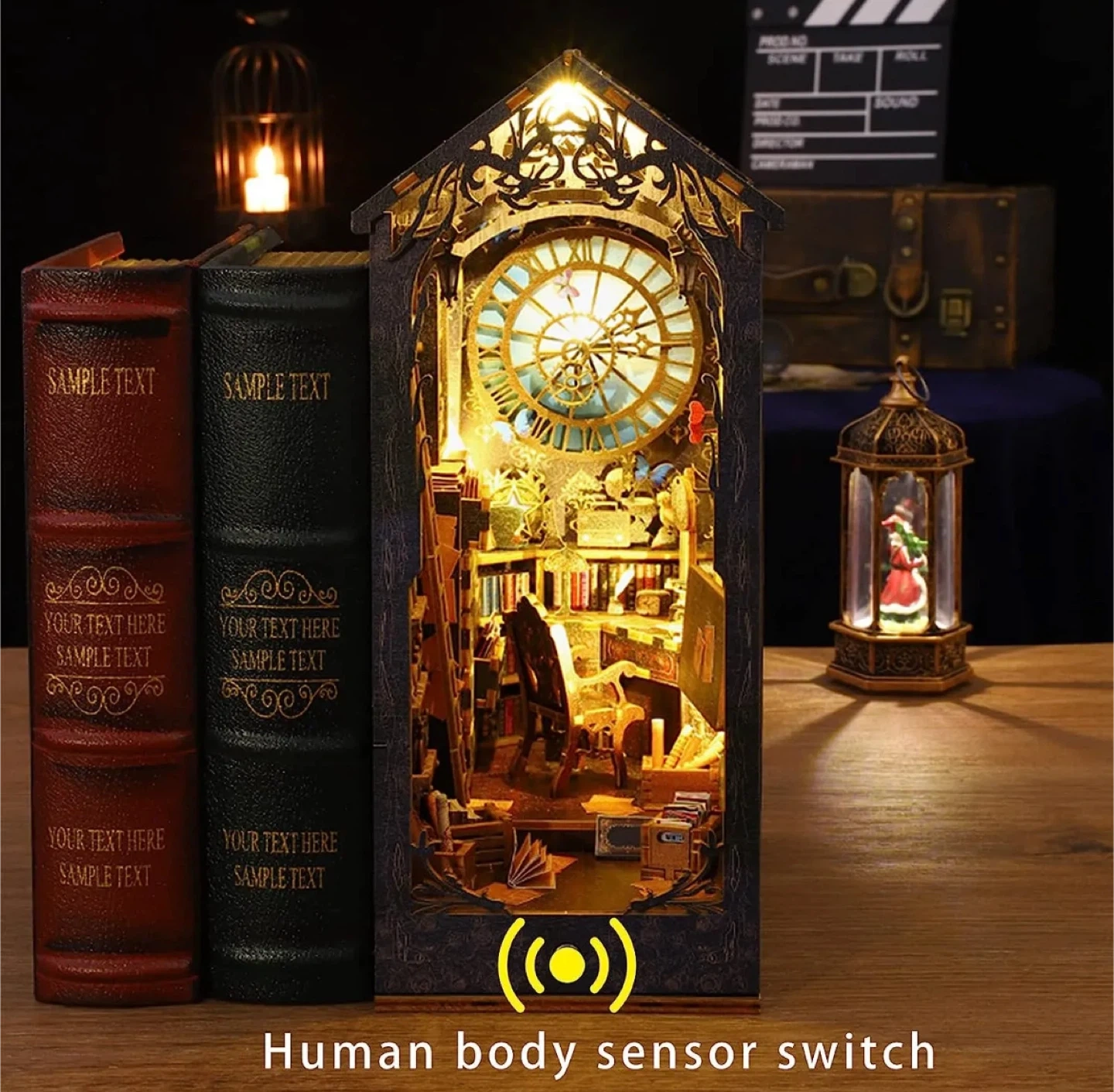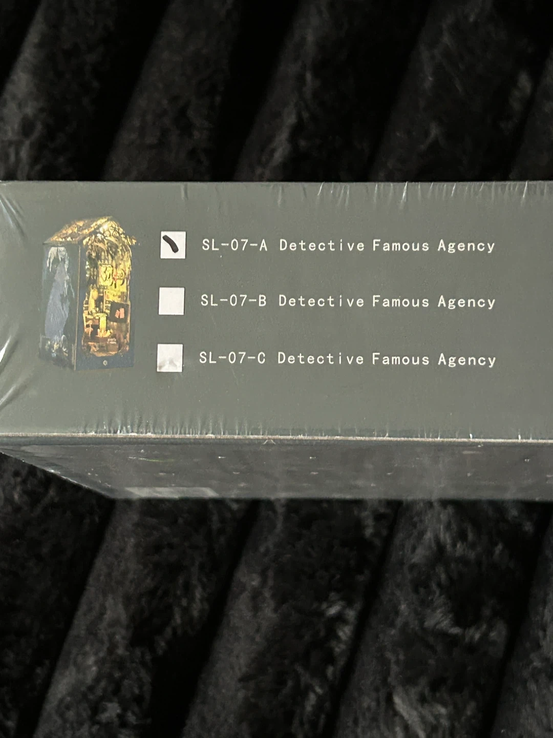 This is a new DIY Book Nook Kit. It's the Detective Famous Agency model. It's a fun project for ages 14+. The kit includes everything you need to create a miniature detective agency scene for your bookshelf. Assembly dimensions are 200x110x240mm. It includes LED lights to illuminate the scene. Get ready to build your own little world!