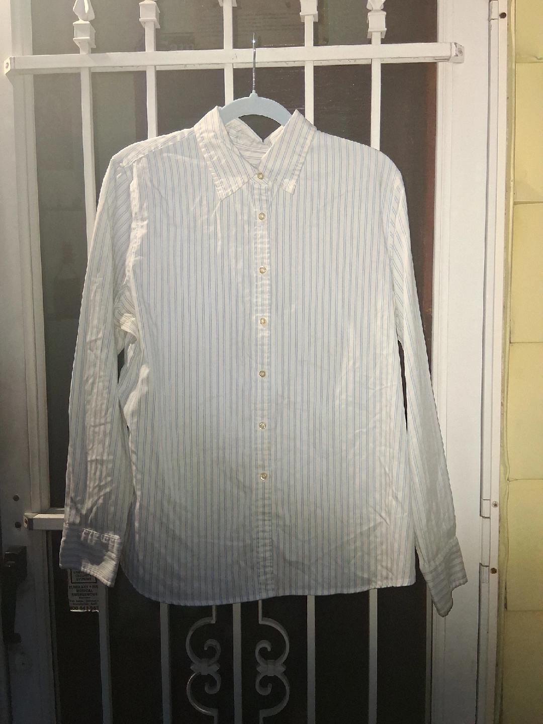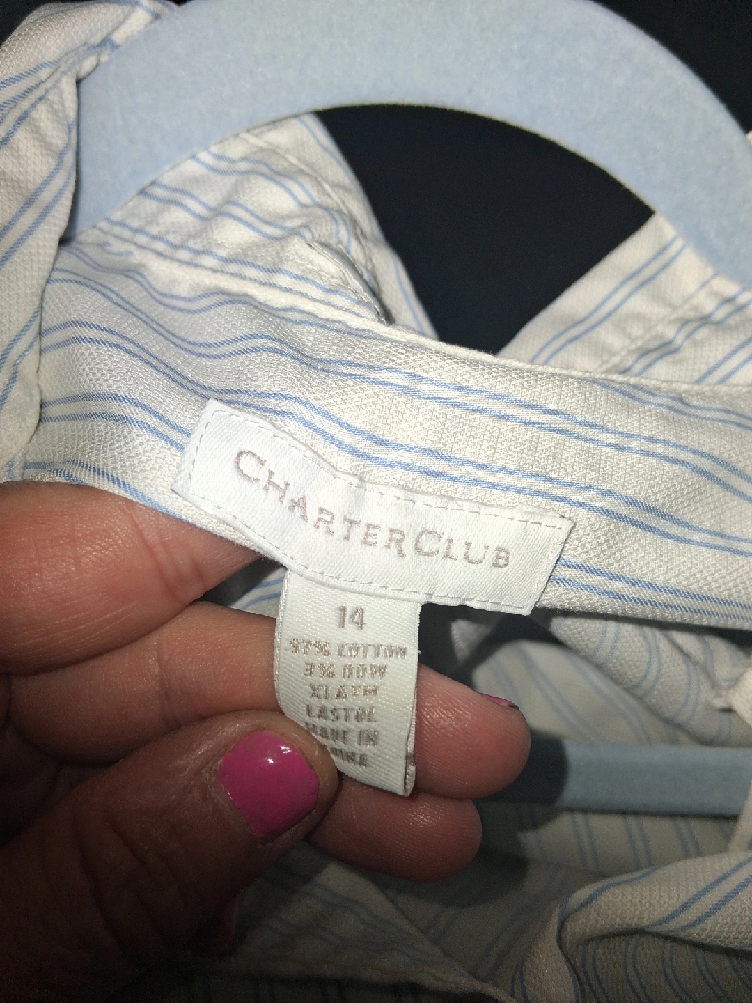 Here's a nice Charter Club shirt in size 14! It features a subtle striped pattern and is made of 97% cotton and 3% rayon. It's in great condition and ready for a new home. Located in Fair Lawn, NJ 07410. Cash only! Please bring exact change when you come pick up your item or items. All sales are final once purchased.