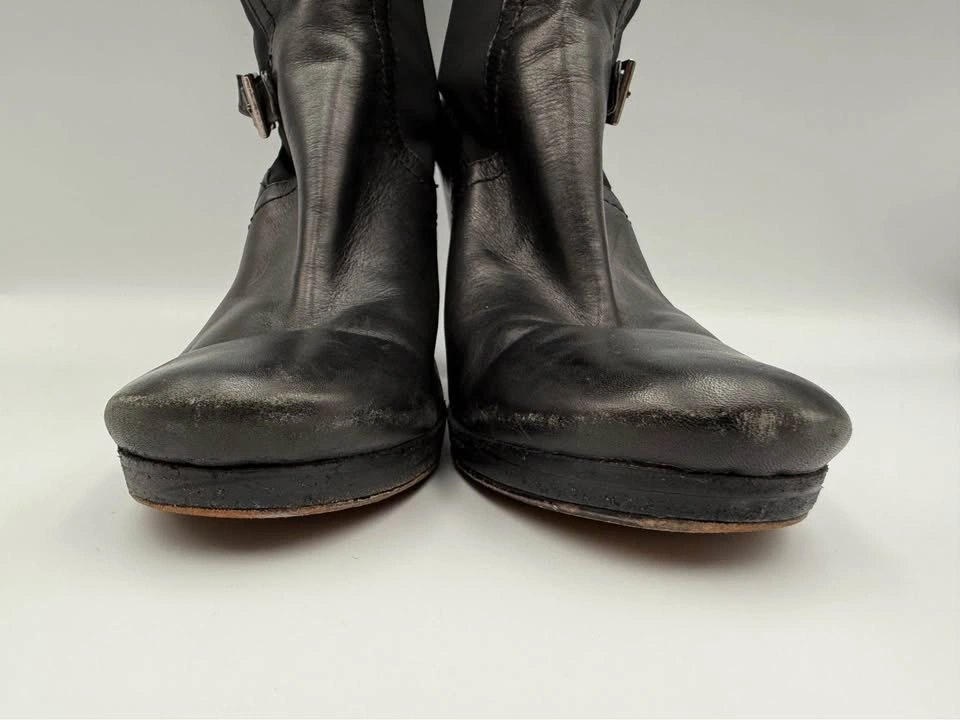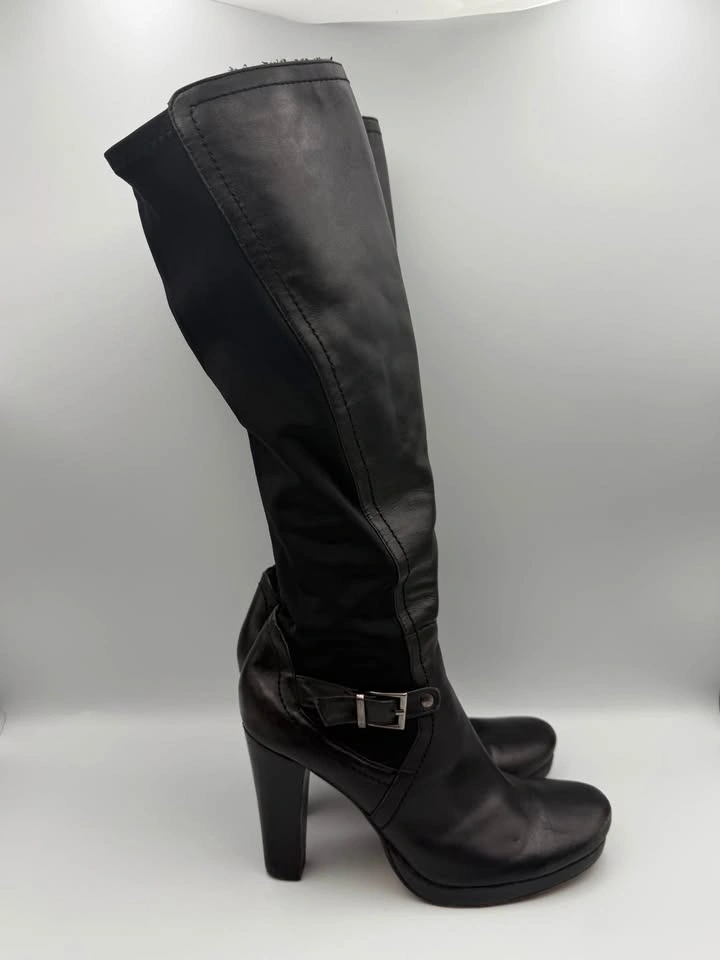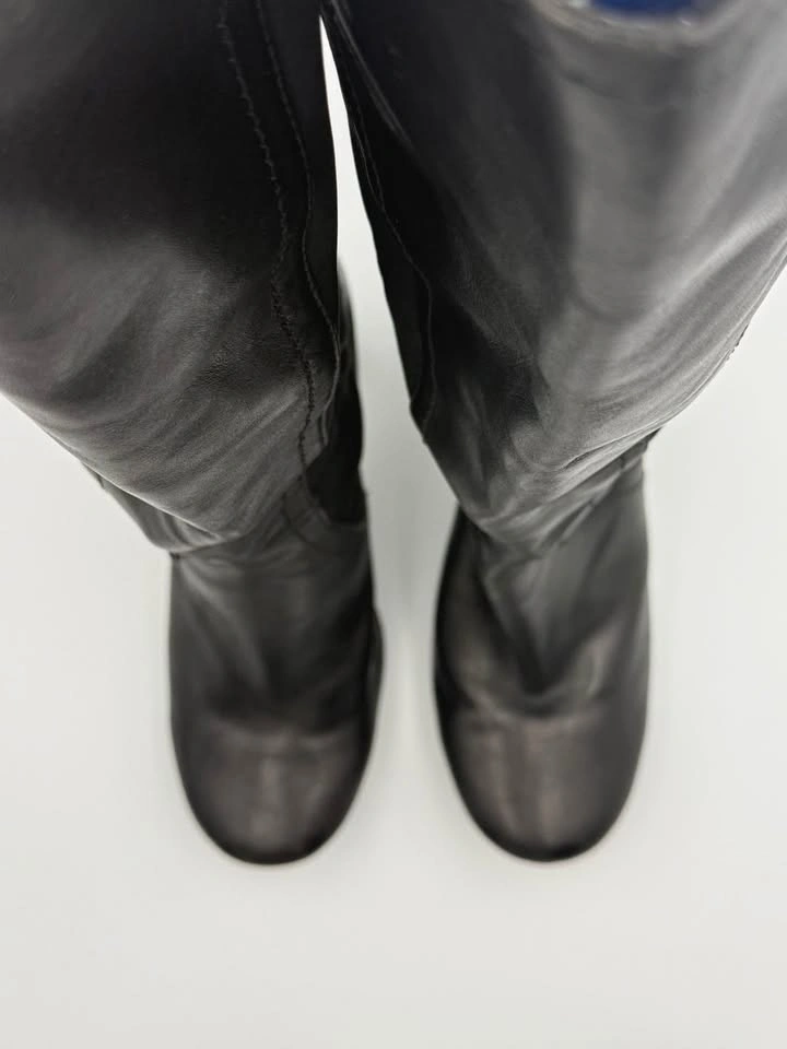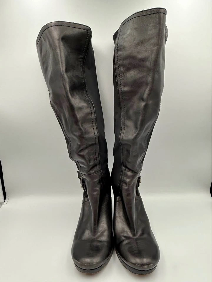 Elegant Charles David Women’s Knee High Leather Boots. Featuring a sleek black leather design with stretch capability for added comfort, these boots are perfect for both dressy and casual looks. The high heel adds sophistication and elongates the legs, while the stretch panels ensure a better fit around the calves. Details: Brand: Charles David Style: Knee High Boots Heel Height: High Heel Color: Black Material: Leather with stretch paneling Size: 6B (Women’s) Condition: Good pre-owned condition – clean and well-maintained with normal wear. No major flaws. Why You’ll Love Them: ✔ Classic black leather look that pairs with dresses, skirts, or jeans ✔ Stretch design for added comfort and flexibility ✔ Timeless Charles David craftsmanship Condition Notes: These boots are in good used condition with light wear from normal use. Soles and heels show some signs of wear but have plenty of life left. No major scuffs, tears, or defects.