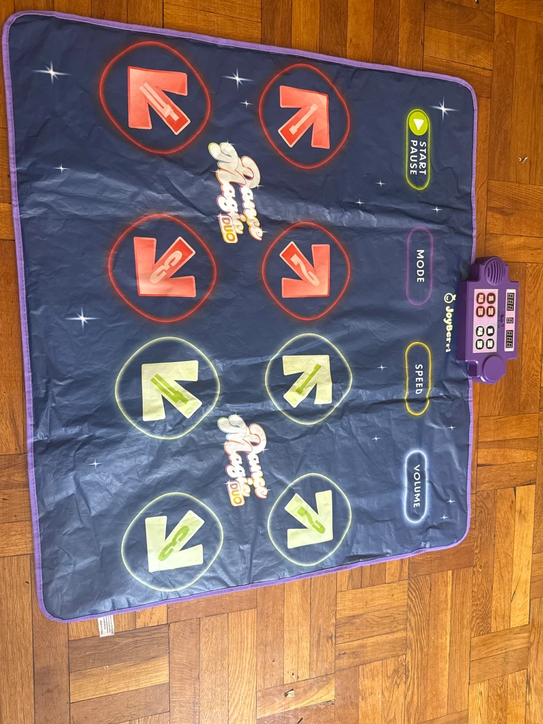 Get ready to dance with this Dance Magic Duo dance mat! It features arrows, start/pause, mode, speed, and volume controls. Perfect for some fun and exercise!