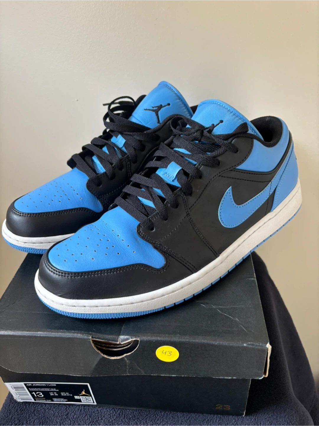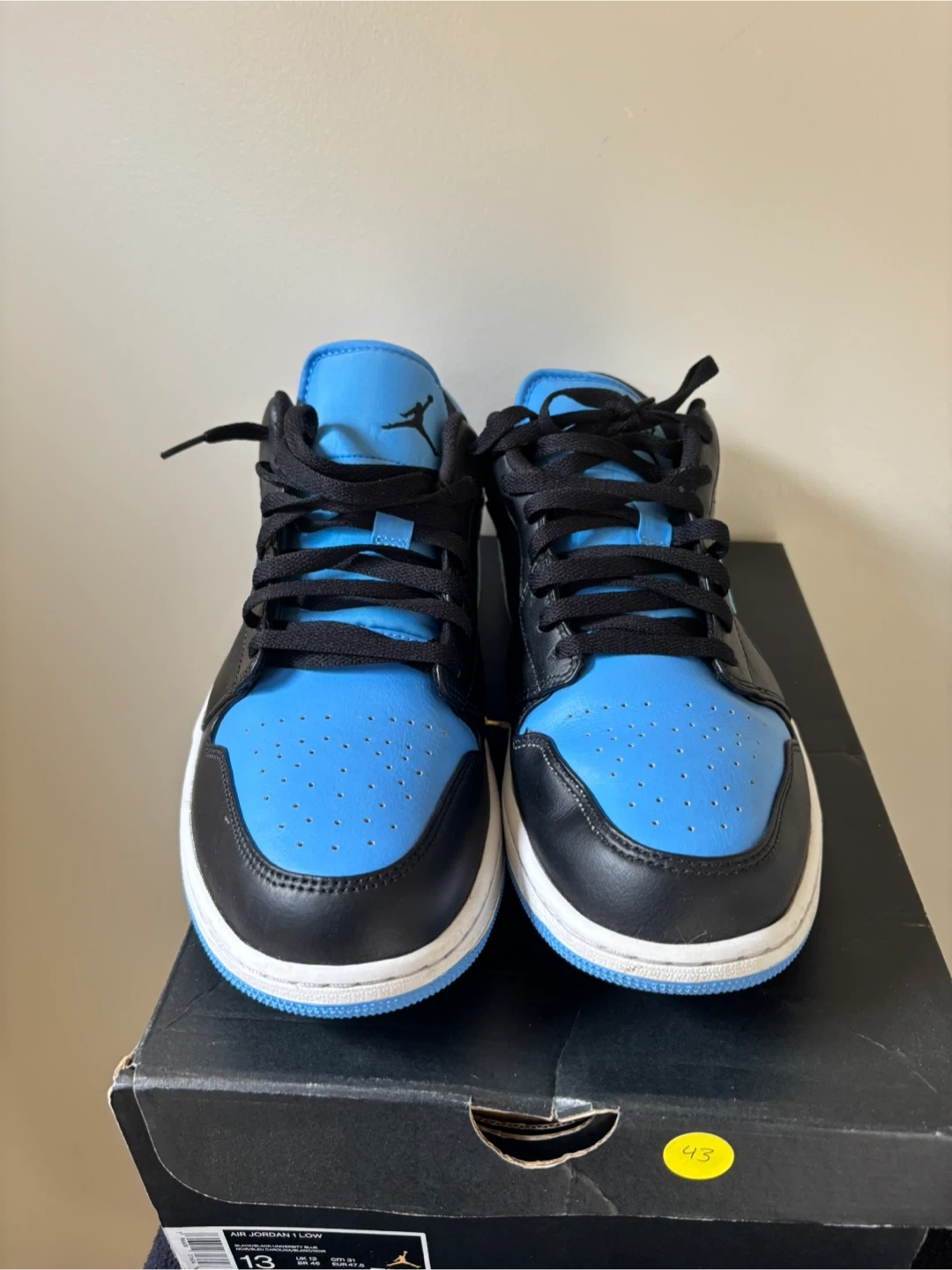 60Selling a pair of Air Jordan 1 Lows in black and university blue, size 13. They come with the original box!
