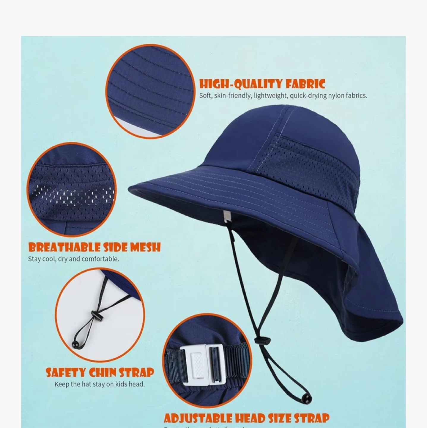 Keep your little one protected from the sun with this adorable sun hat! It features a neck flap for extra coverage and an adjustable head size strap to ensure a comfy fit. The breathable side mesh helps keep them cool and dry, and the safety chin strap keeps the hat securely on their head. Made with high-quality, skin-friendly, lightweight, quick-drying nylon fabric