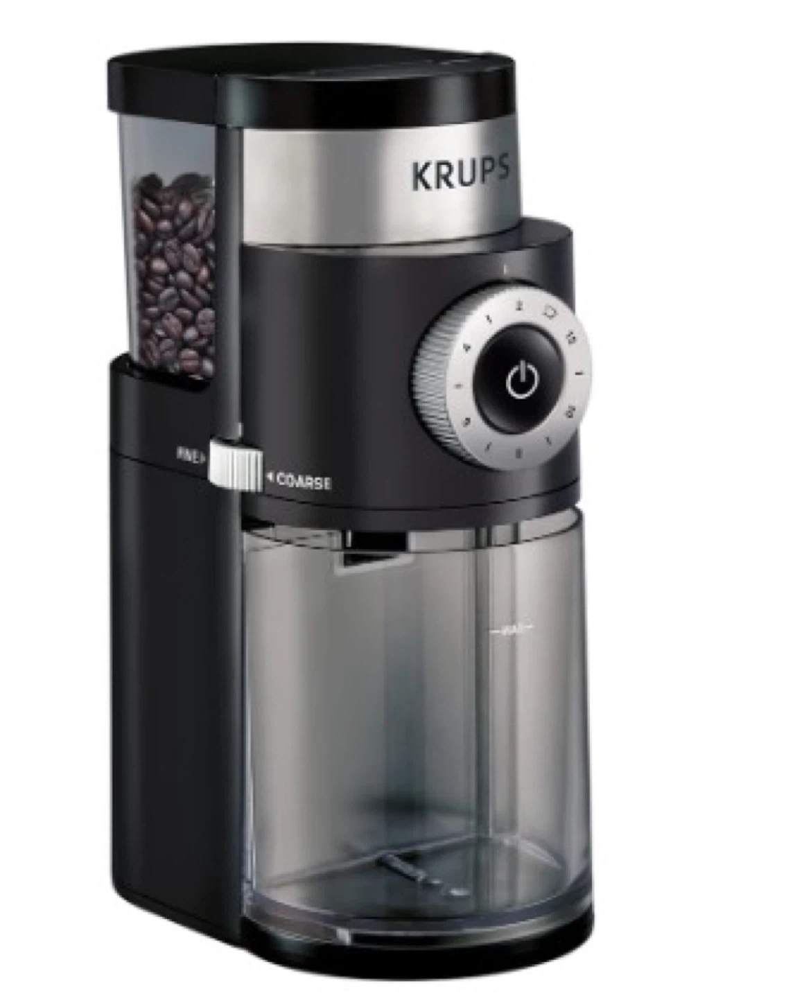 I'm selling a Krups coffee grinder. It features a flat disc burr for consistent grinding and offers 12 settings from fine to coarse grinding. It also has a selector to set the amount of beans to grind. Great for coffee lovers! I used it only once.