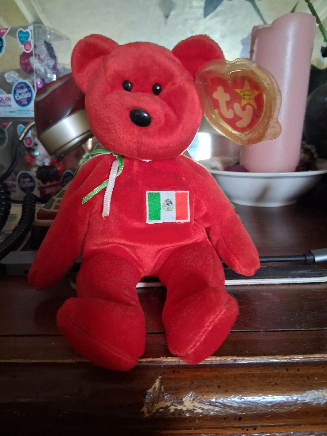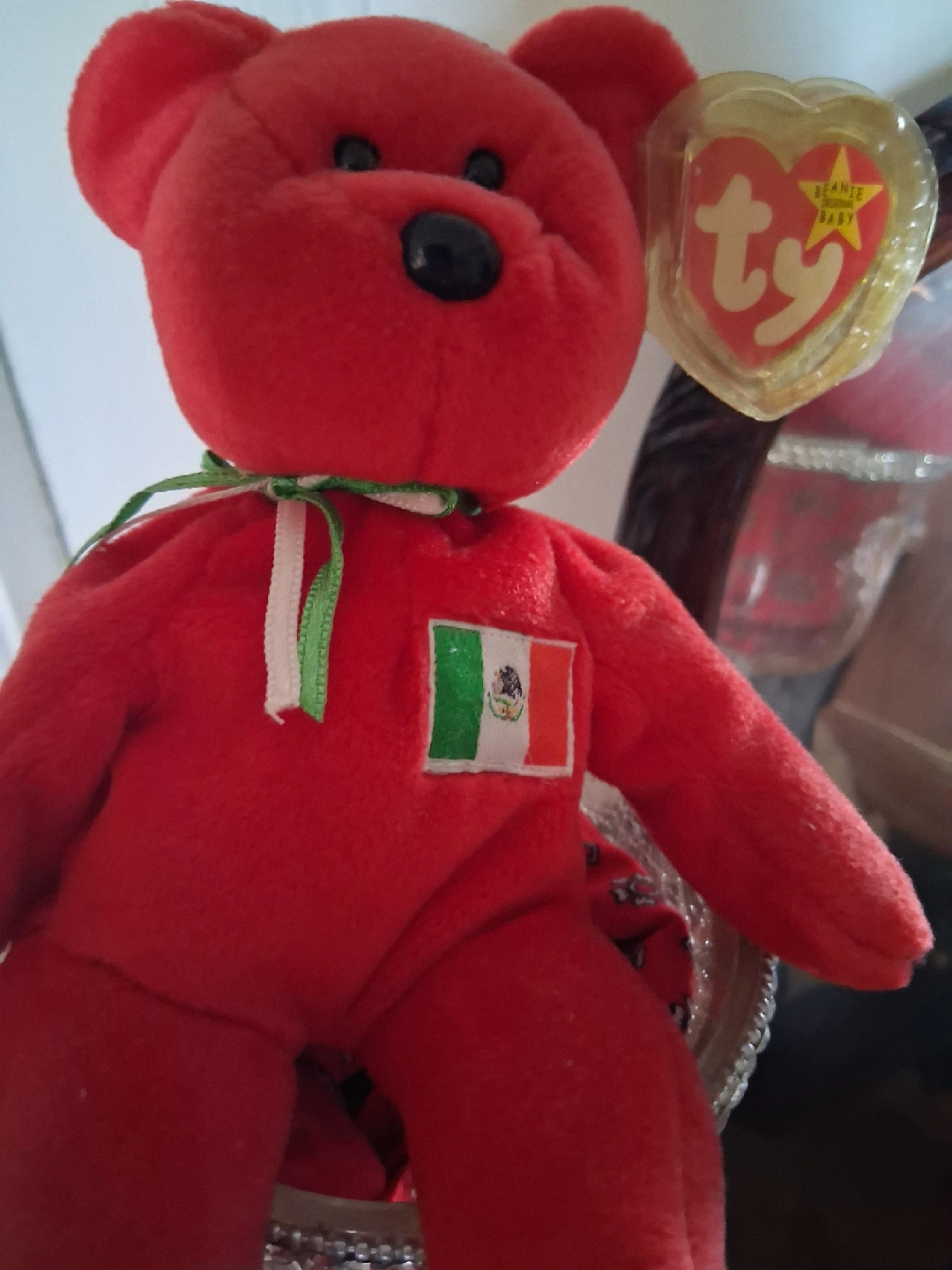 Selling a red Ty Beanie Baby Oso Mexico Bear! It has the Mexican flag on its chest and a ribbon around its neck. A great addition to any Beanie Baby collection