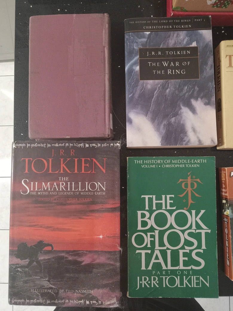 Selling a collection of J.R.R. Tolkien books. Titles include: - The War of the Ring - The Silmarillion - The Book of Lost Tales Part One - Unfinished Tales - The Lays of Beleriand - The Shaping of Middle Earth