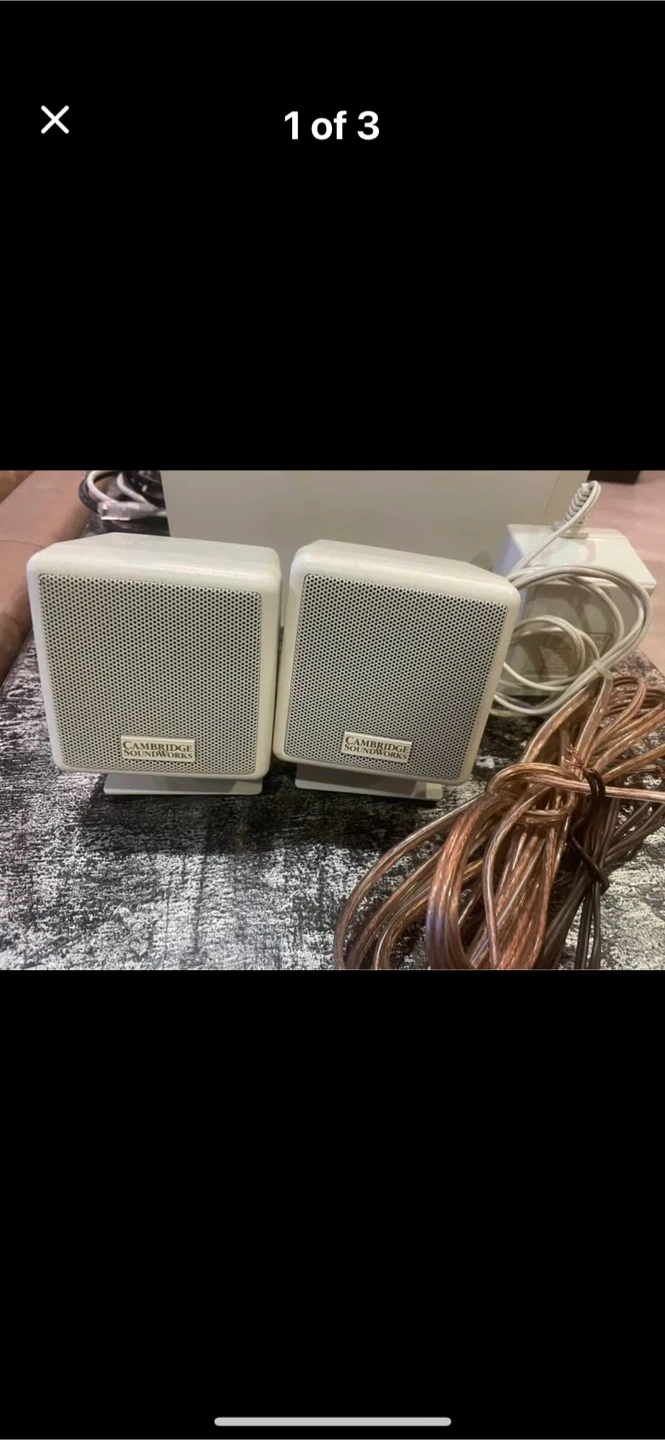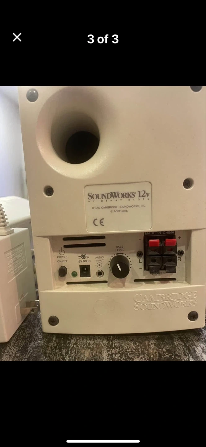Selling a pair of Cambridge SoundWorks 12v speakers. They are in good condition and come with the power adapter and speaker wire