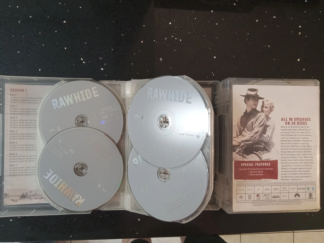 32Selling the complete Rawhide DVD collection, featuring seasons 1-3 and 4-6! This classic series stars Clint Eastwood and includes all 90 episodes on 24 discs. Perfect for fans of Westerns and classic TV!