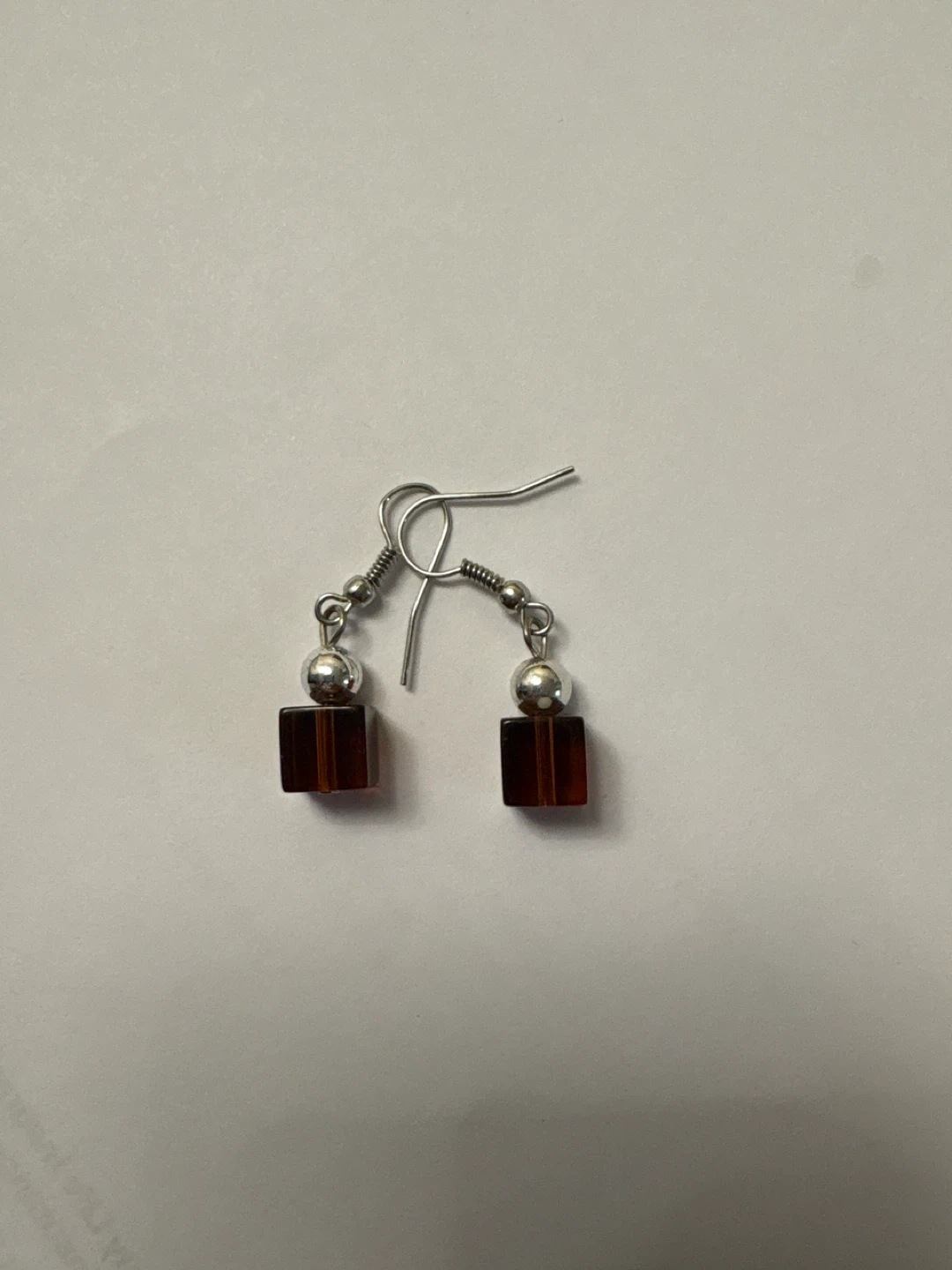 Here are some cute brown cube drop earrings. They have a silver ball on top of each cube. They look great and are in good condition!