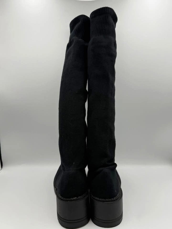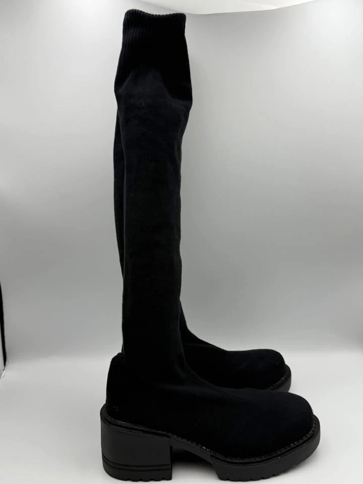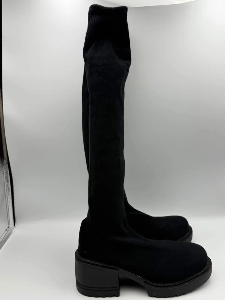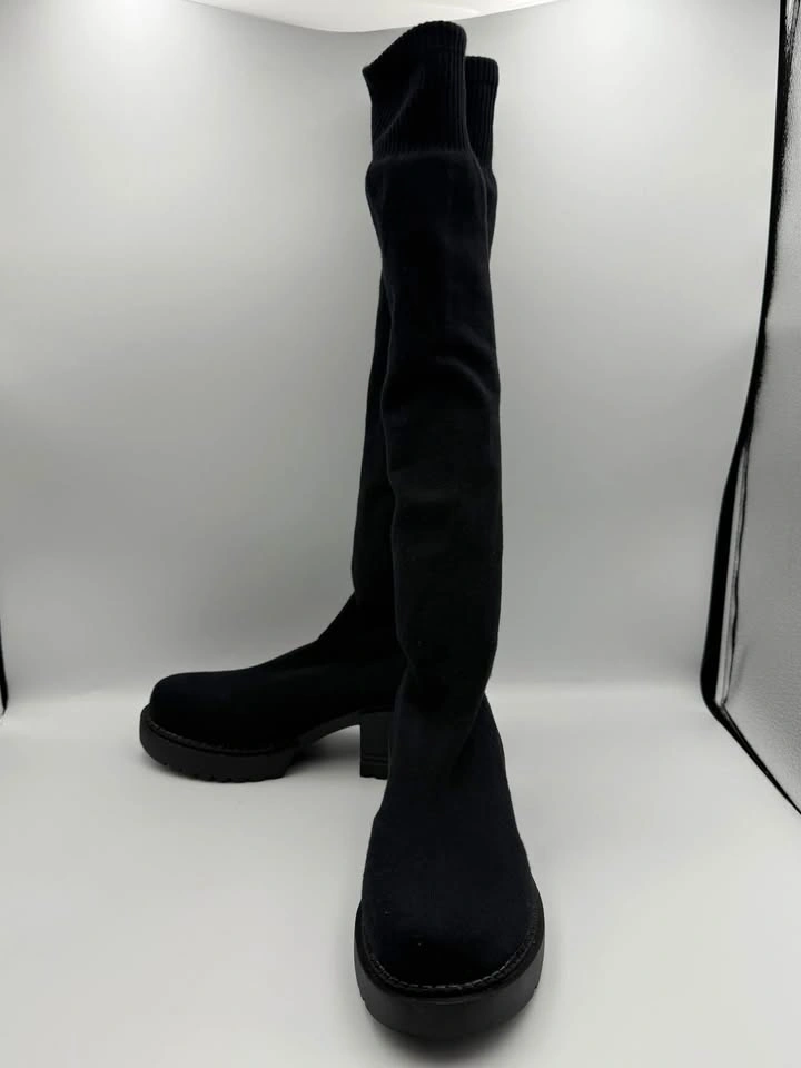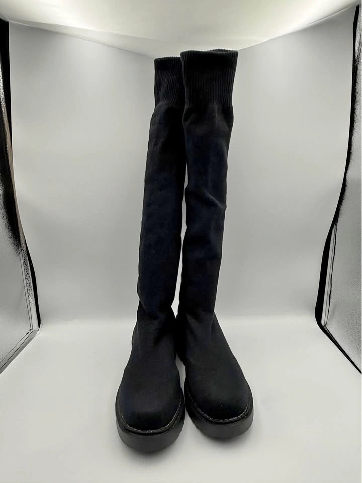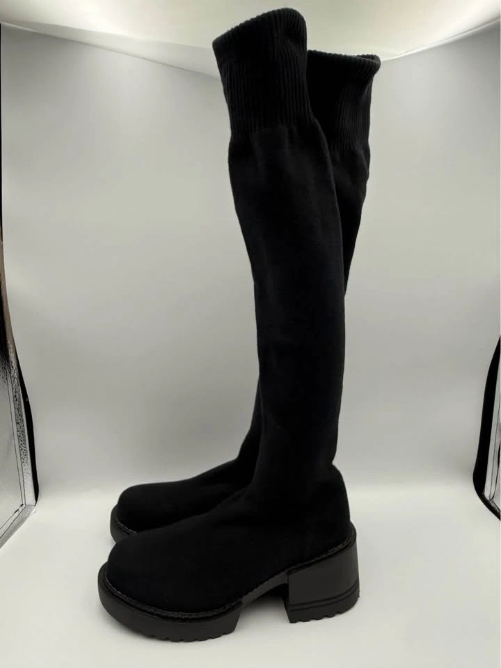 Step up your style with these sleek Women’s Over the Knee Sock Style Boots. Designed with a slim leg fit and stretch fabric for a flattering silhouette, these boots are perfect for pairing with dresses, skirts, or skinny jeans. Lightweight and versatile, they add a modern edge to any outfit. Details: Condition: Brand New Style: Over the Knee / Sock Style Boots Color: Black Material: Cloth / Stretch Fabric Upper Fit: Slim Leg, Body-Hugging Stretch Heel Style: Block Toe Shape: Round Closure: Pull-On (sock style) Why You’ll Love Them: ✔ Trendy over-the-knee sock design that elongates the legs ✔ Slim, stretch fit for a sleek silhouette ✔ Lightweight and comfortable for all-day wear ✔ Fashion staple – perfect for day-to-night looks Condition Notes: These boots are new, never worn. No defects – ready to wear right out of the box!