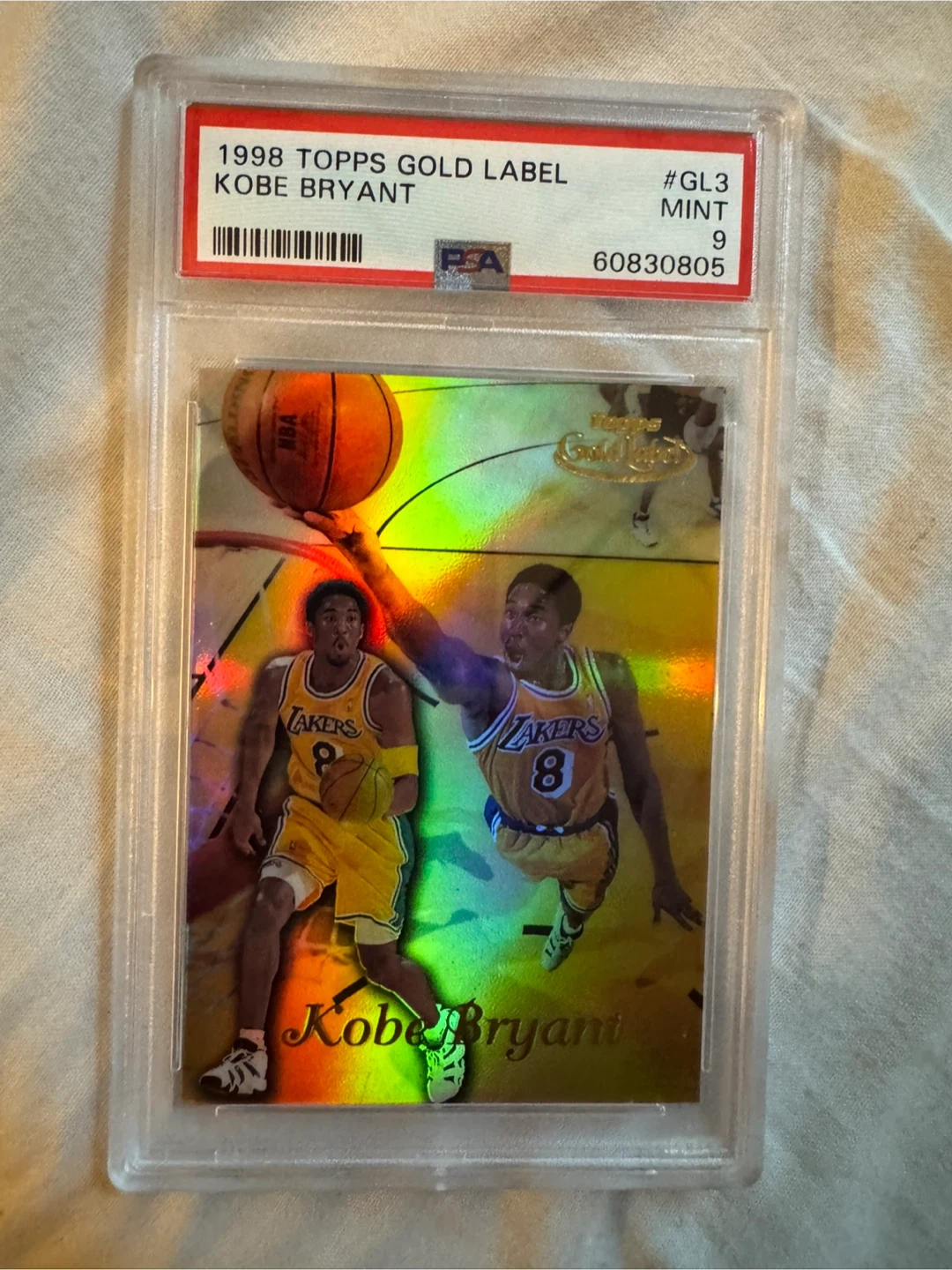 Selling a 1998 Topps Gold Label Kobe Bryant card, graded PSA 9 Mint! This card is #GL3 from the Gold Label series. A great addition to any basketball card collection