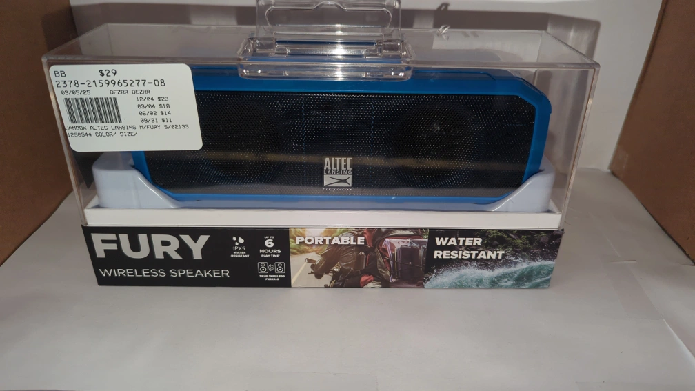 Selling a brand new Altec Lansing Fury wireless speaker! It's still in its original packaging. This portable speaker is also water-resistant, perfect for on the go. The box says it plays up to 6 hours! We offer layaway Ask for Alonso Message me for location