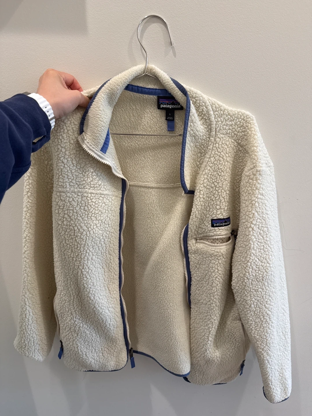 73Selling a Patagonia women's fleece jacket in size L! It's in great condition and perfect for layering or wearing on its own. The fleece is soft and cozy, making it ideal for cooler weather. The jacket features a full zip front and a comfortable fit.