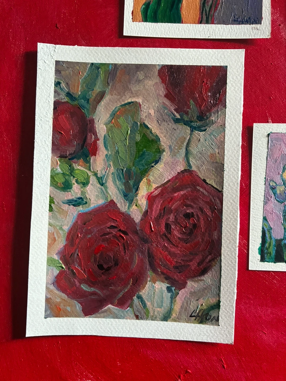 5.5” x 8” oil painting on canvas paper Can choose to include black, white or wooden frame.