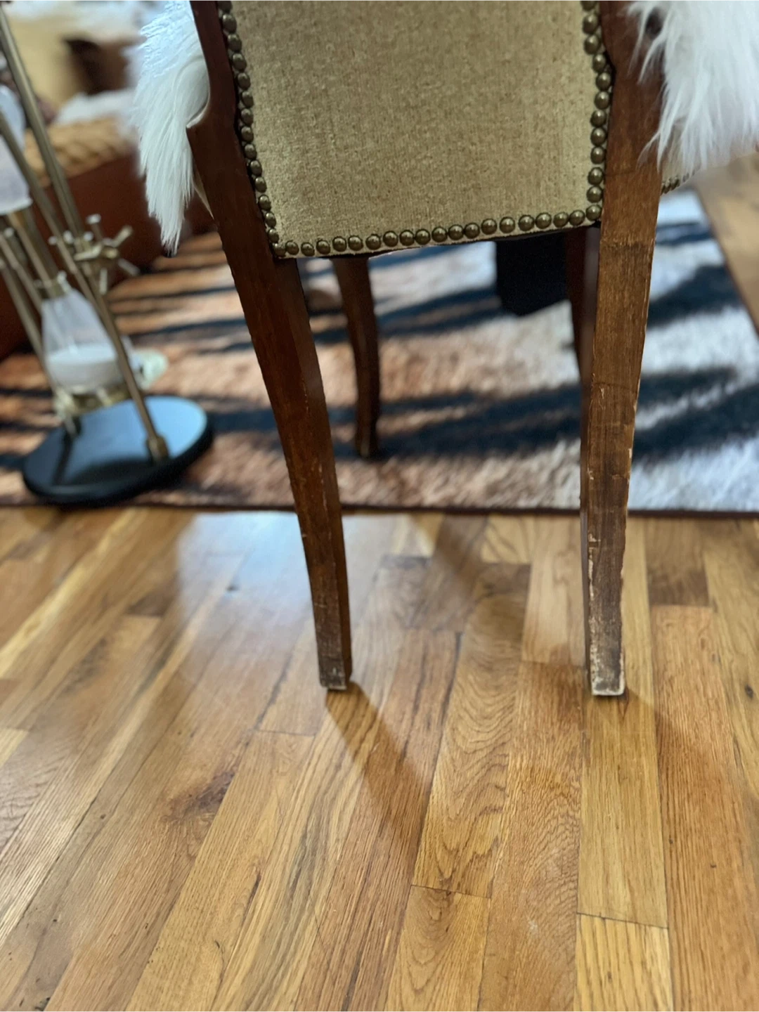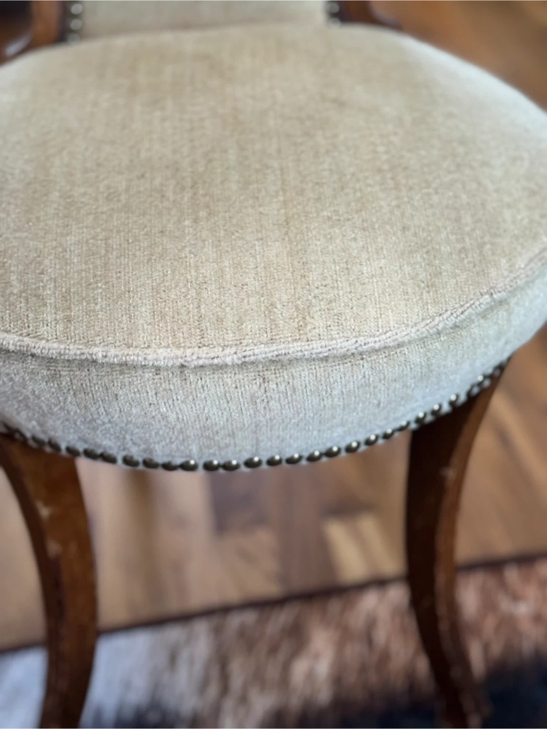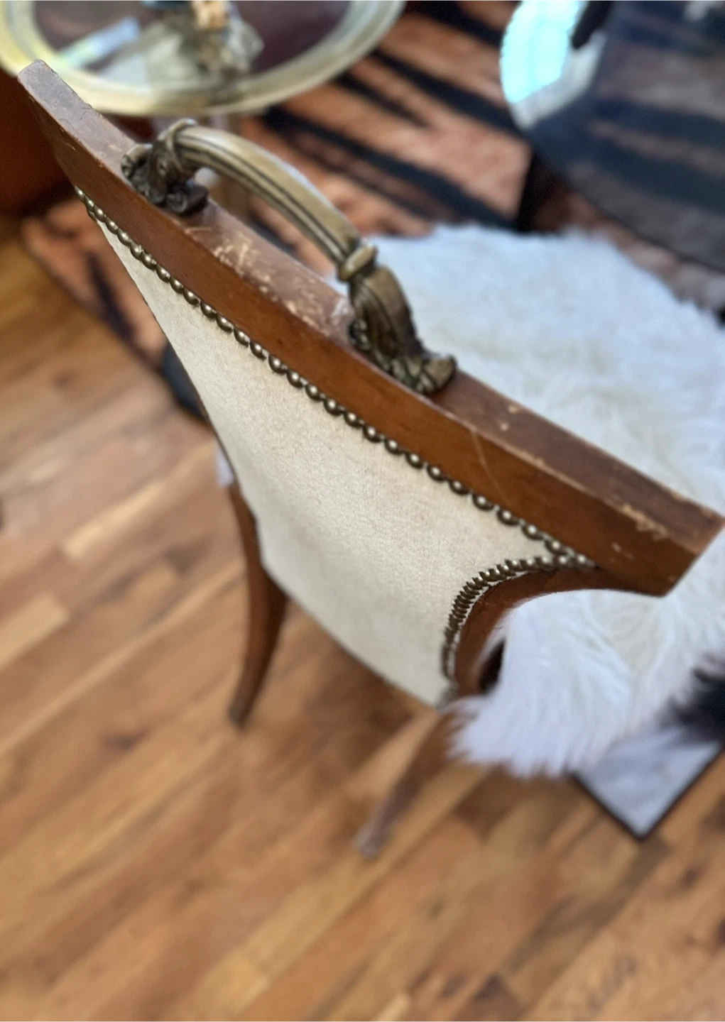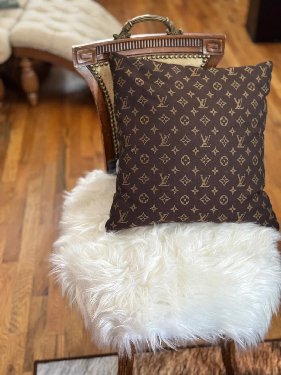 Selling a unique vintage accent chair! It has a classic design with a wooden frame and upholstered back. The chair comes with a fluffy faux fur seat cover that adds a touch of modern comfort and style. Perfect as an accent piece in any room! VINTAGE ITEMS NOTE: Please be aware that all items are used/vintage/antique and have small signs of age/patina which should be expected. We try our best to take clear photos, These are authentic vintage pieces, so various dents/dings/scratches/etc are absolutely expected. I do my best to showcase and note any notable denting, rusting, or wear that is outside this general "vintage wear" scope. If you have any questions, please do not hesitate to message us prior to purchase! Please be aware that all items are used/vintage/antique and have small signs of age/patina which should be expected. We try our best to take clear photos,