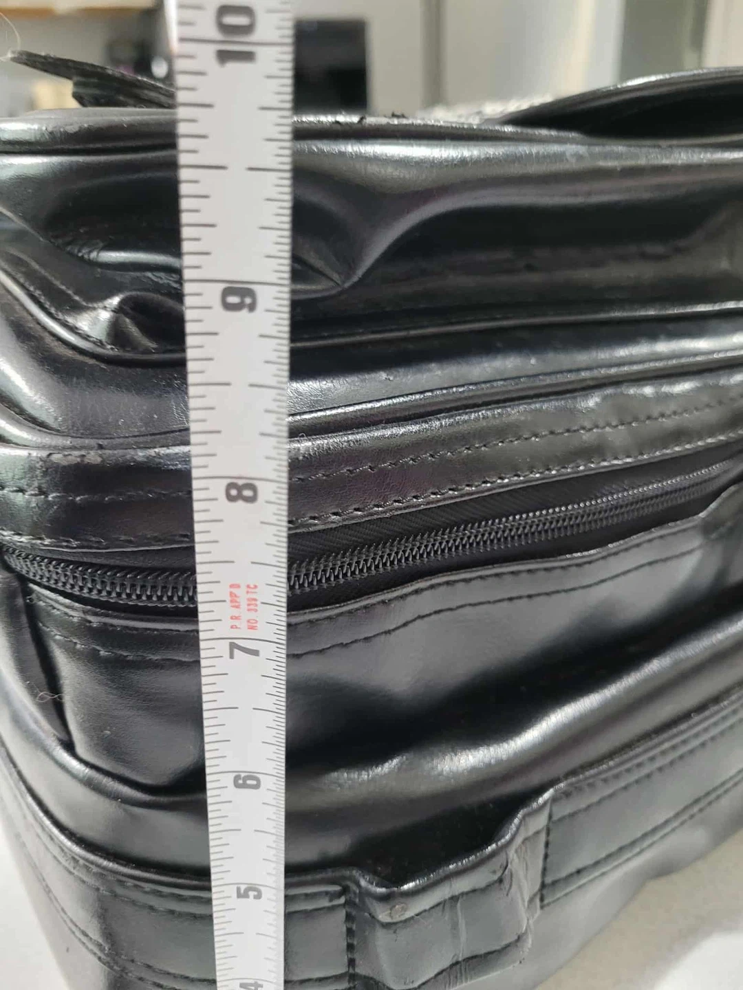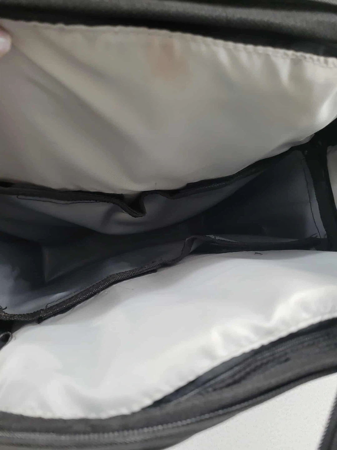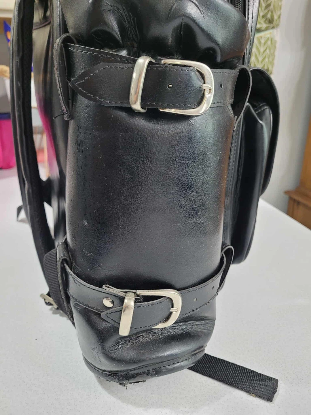 This is a Legacy Picnic Time backpack. It's black and has a few signs of wear, but it's still in good condition. It has a spot for silverware, plates, and glasses!