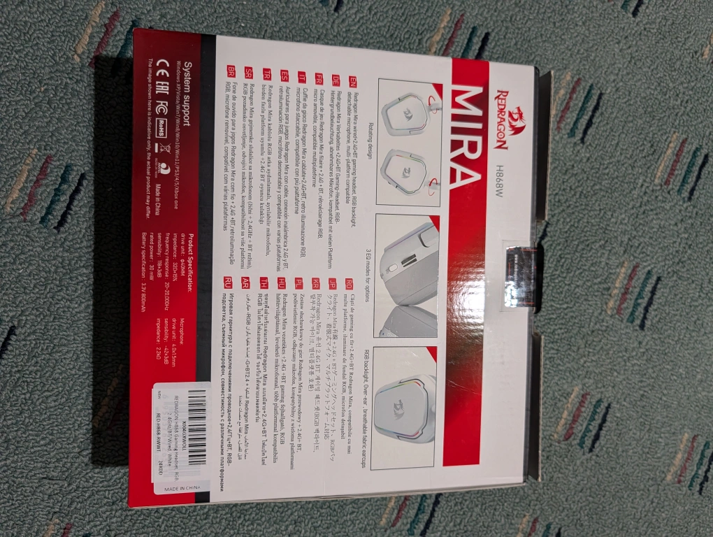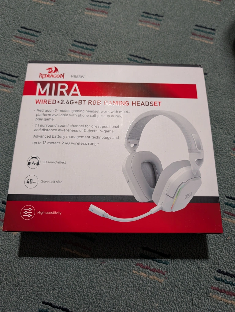Selling a Redragon H868W Mira wired + 2.4G + BT RGB gaming headset in white. It features 3-modes gaming headset work with multi-platform available with phone call pick up during play game. It also has 7.1 surround sound channel for great positional and distance awareness of objects in-game. Advanced battery management technology and up to 12 meters 2.4G wireless range. Box included! $35