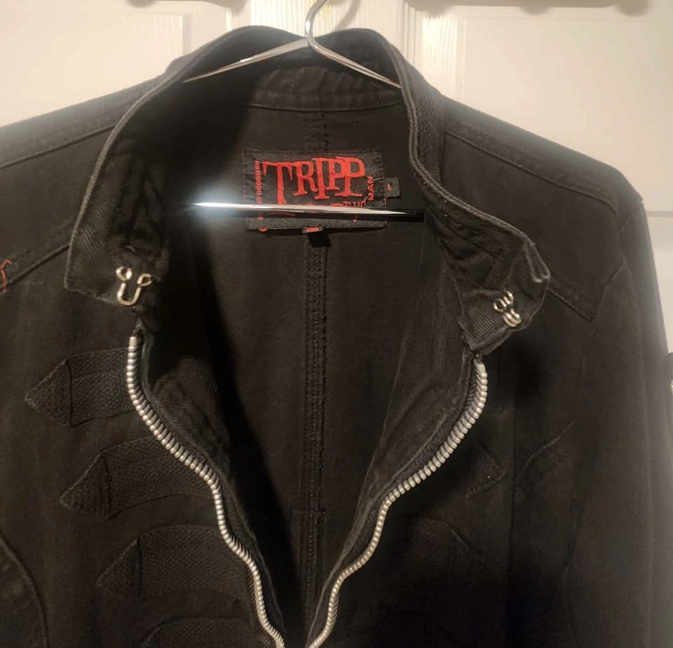 Vtg 00s Y2K TRIPP NYC Black Trench Coat L