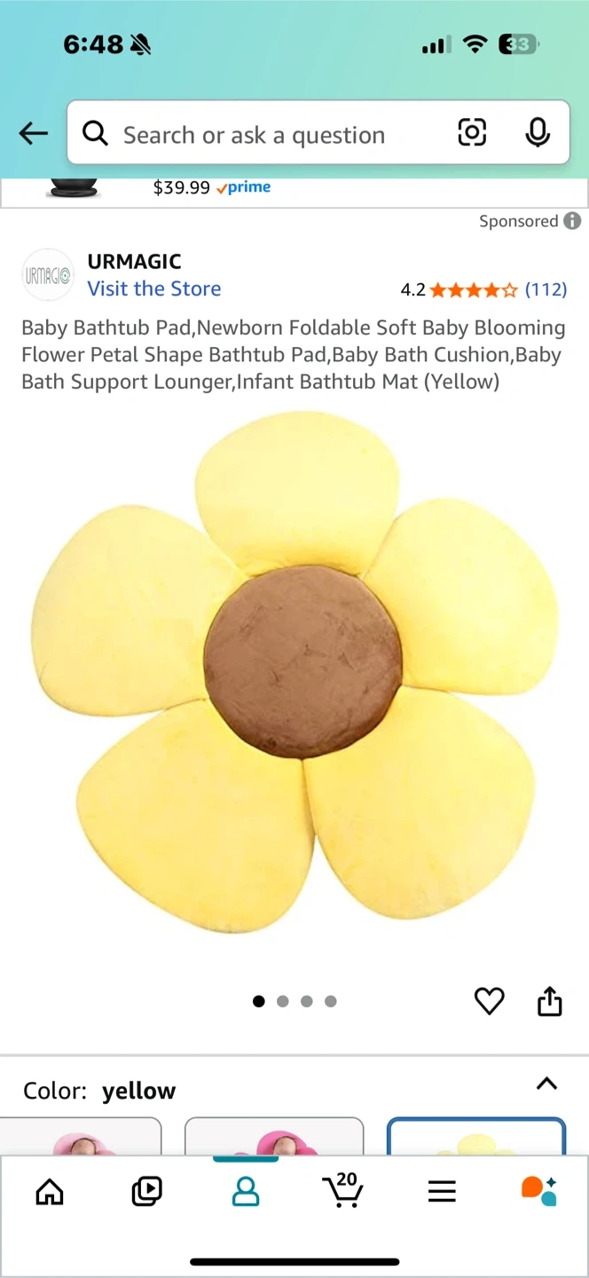 Selling a baby bathtub pad shaped like a blooming yellow flower! -It's a soft and foldable newborn bath cushion, providing support as a lounger in the infant bathtub or for sink baths. -Machine washable -Can also be used for tummy time -Recently machine washed