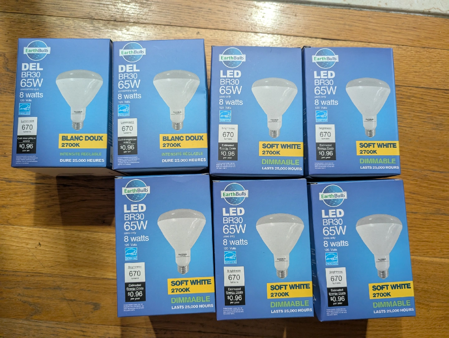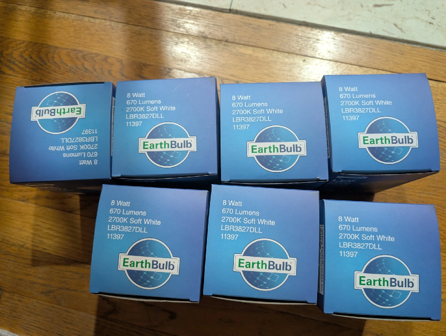 83Pick up in Brooklyn(Bay Ridge, Dyker, Bensonhurst) Cash only. Looking for a great deal on high-quality LED light bulbs? I'm selling seven brand new EarthBulb LED BR30 light bulbs, still in their original packaging. These bulbs are dimmable, emit a soft white light (2700K), and provide 670 Lumens of brightness. With a lifespan of up to 25,000 hours, they're a long-lasting and energy-efficient choice for your home. You'd pay around $40 to get this many at Home Depot, but since I bought too many, I'm offering all seven for just $19