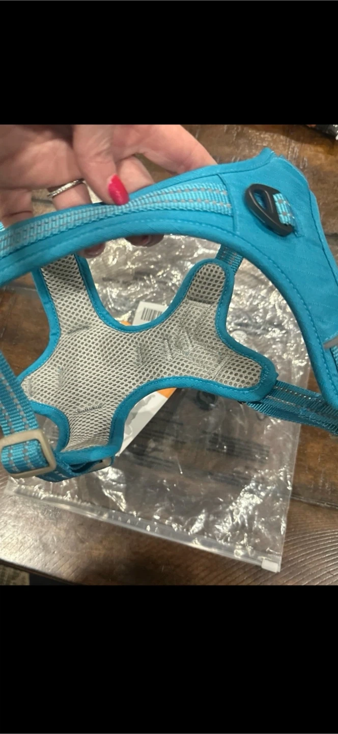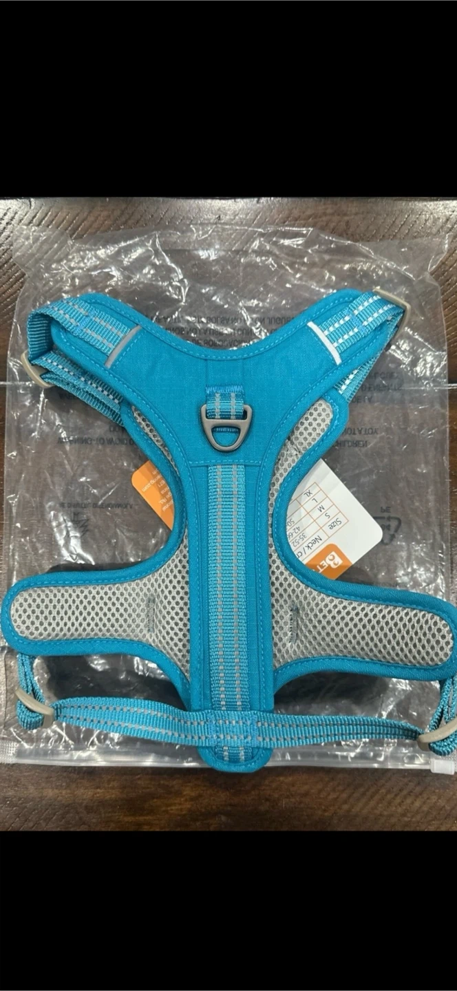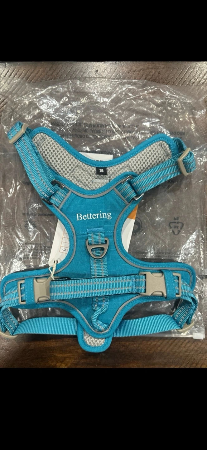 Selling a Bettering dog harness in size small. It's a vibrant turquoise color and appears to be in new condition. Perfect for walks!