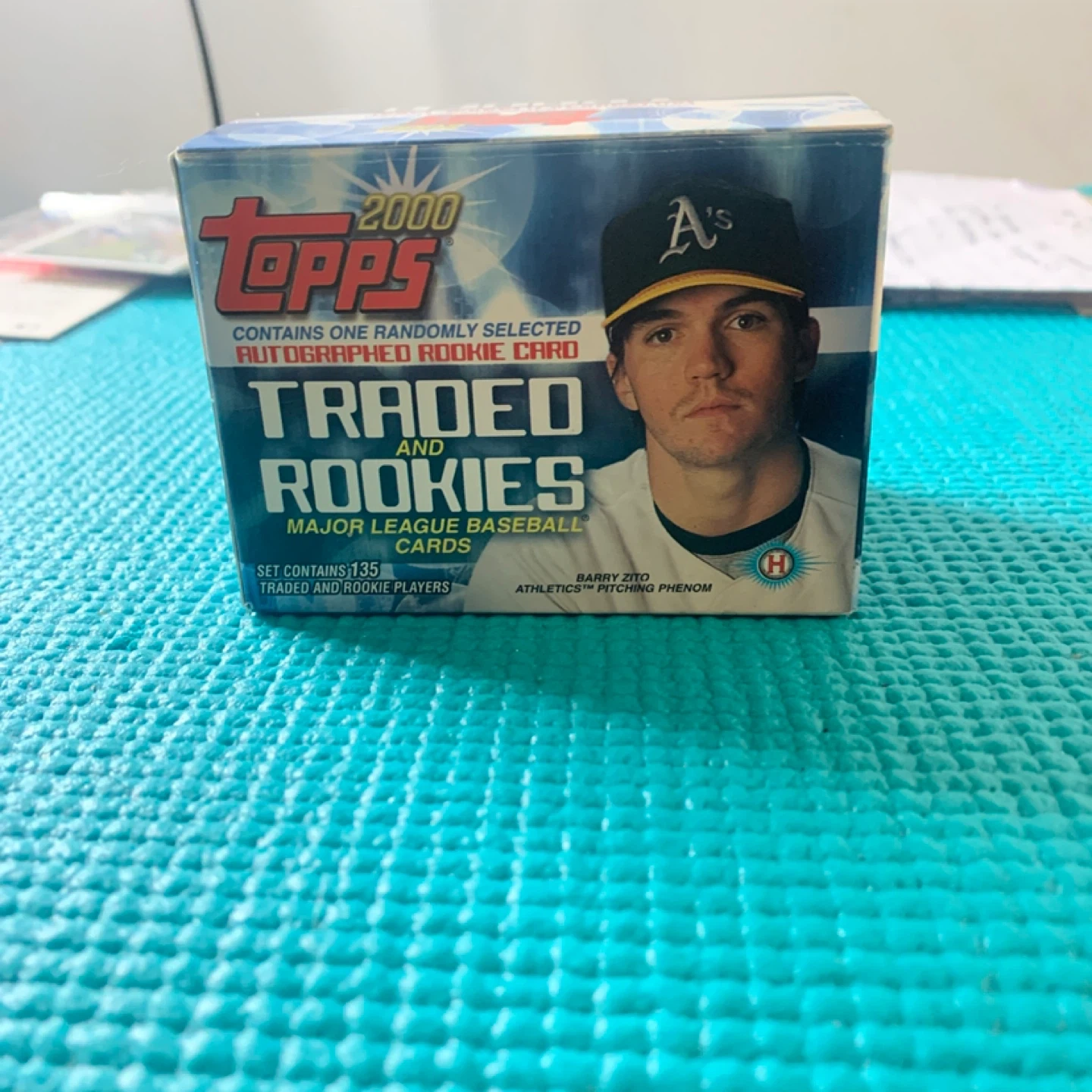 Selling a box of Topps 2000 Traded and Rookies Major League Baseball Cards. Contains one randomly selected autographed rookie card. Set contains 135 traded and rookie players unsealed but never opened
