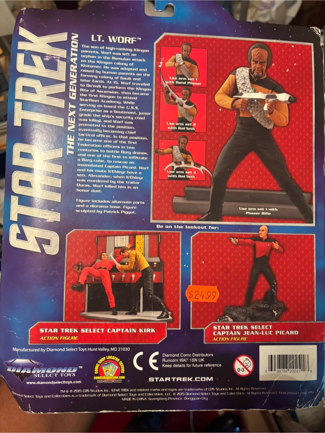 Selling a Star Trek: The Next Generation Lt. Worf action figure by Diamond Select Toys. The figure includes alternate parts and is sculpted by Patrick Piggott. The original price was $24.99. Comes with the original packaging!