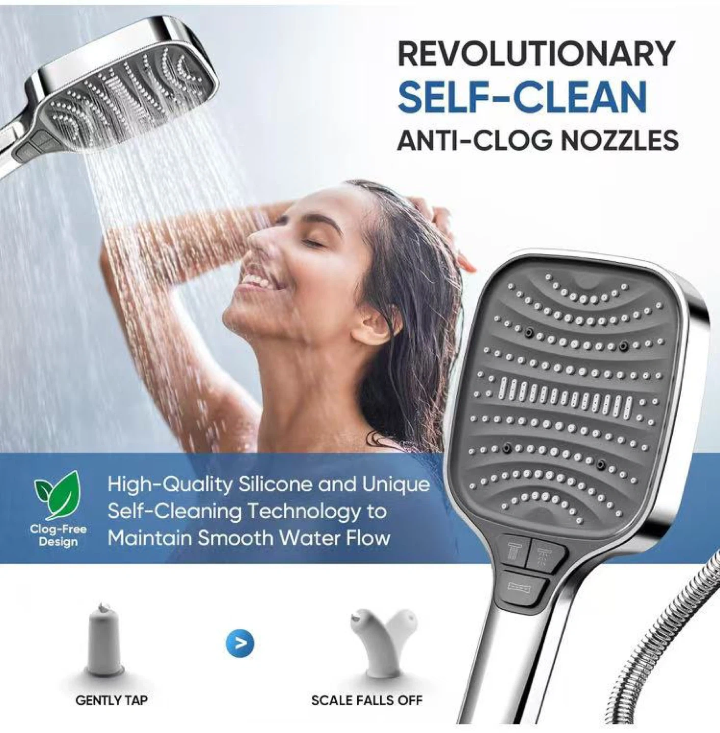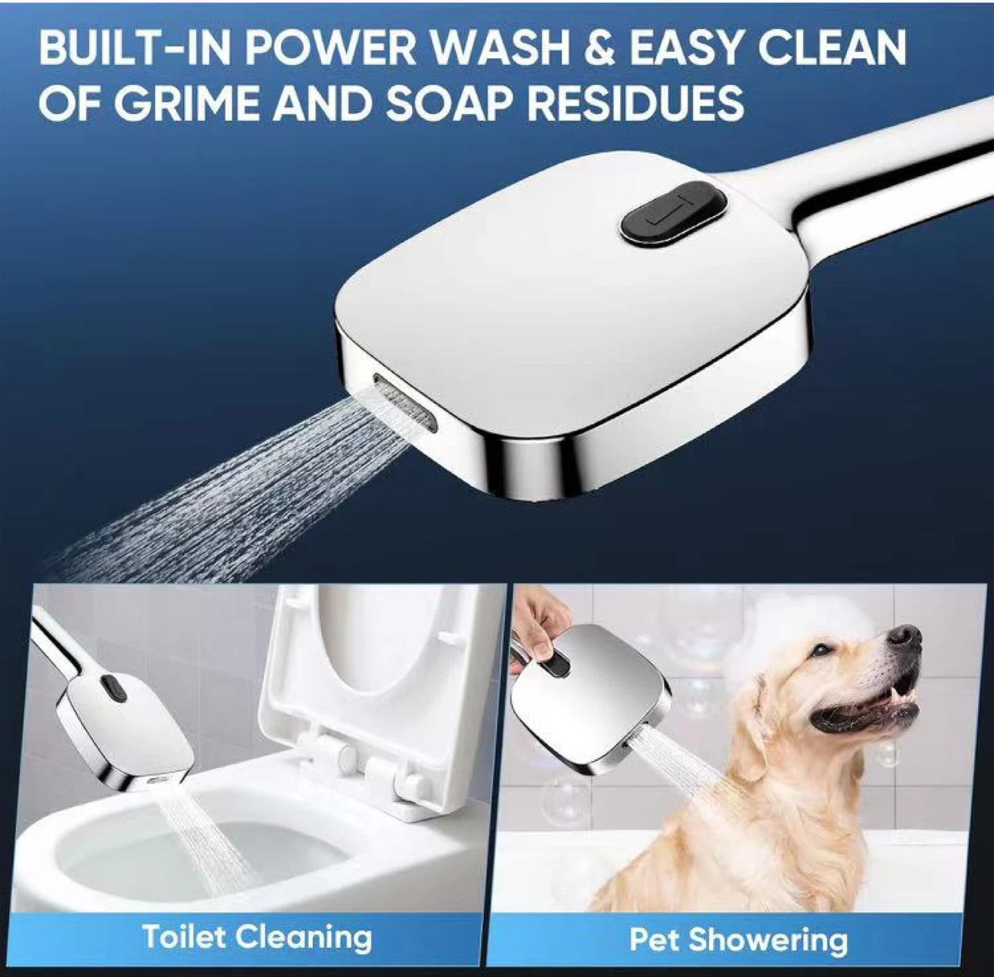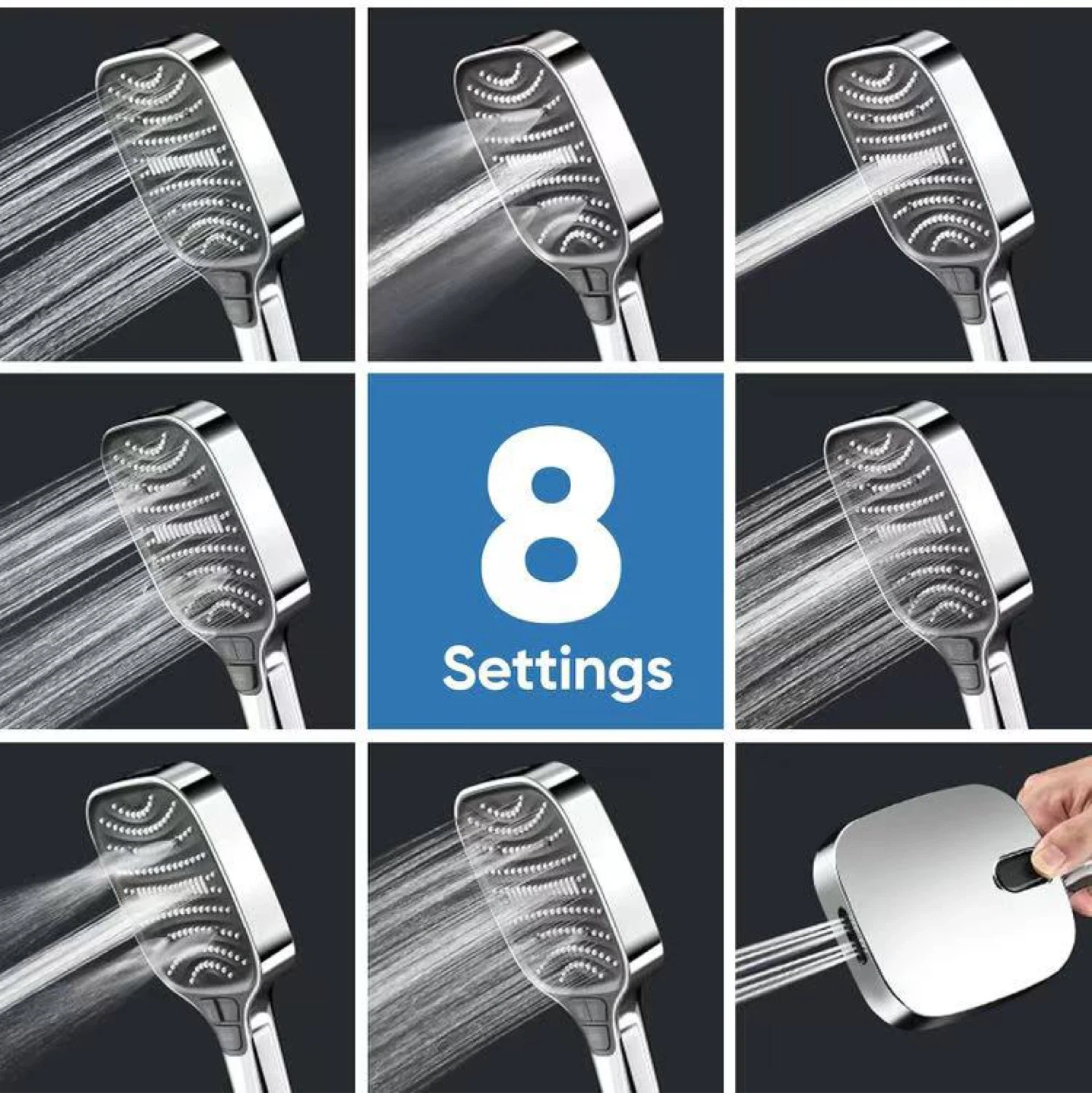 High Pressure 8-mode Handheld Shower Head - Anti-clog Nozzles, Built-in Power Wash to Clean Tub, Tile & Pets, Note:Only Include Shower Head Body,Chrome