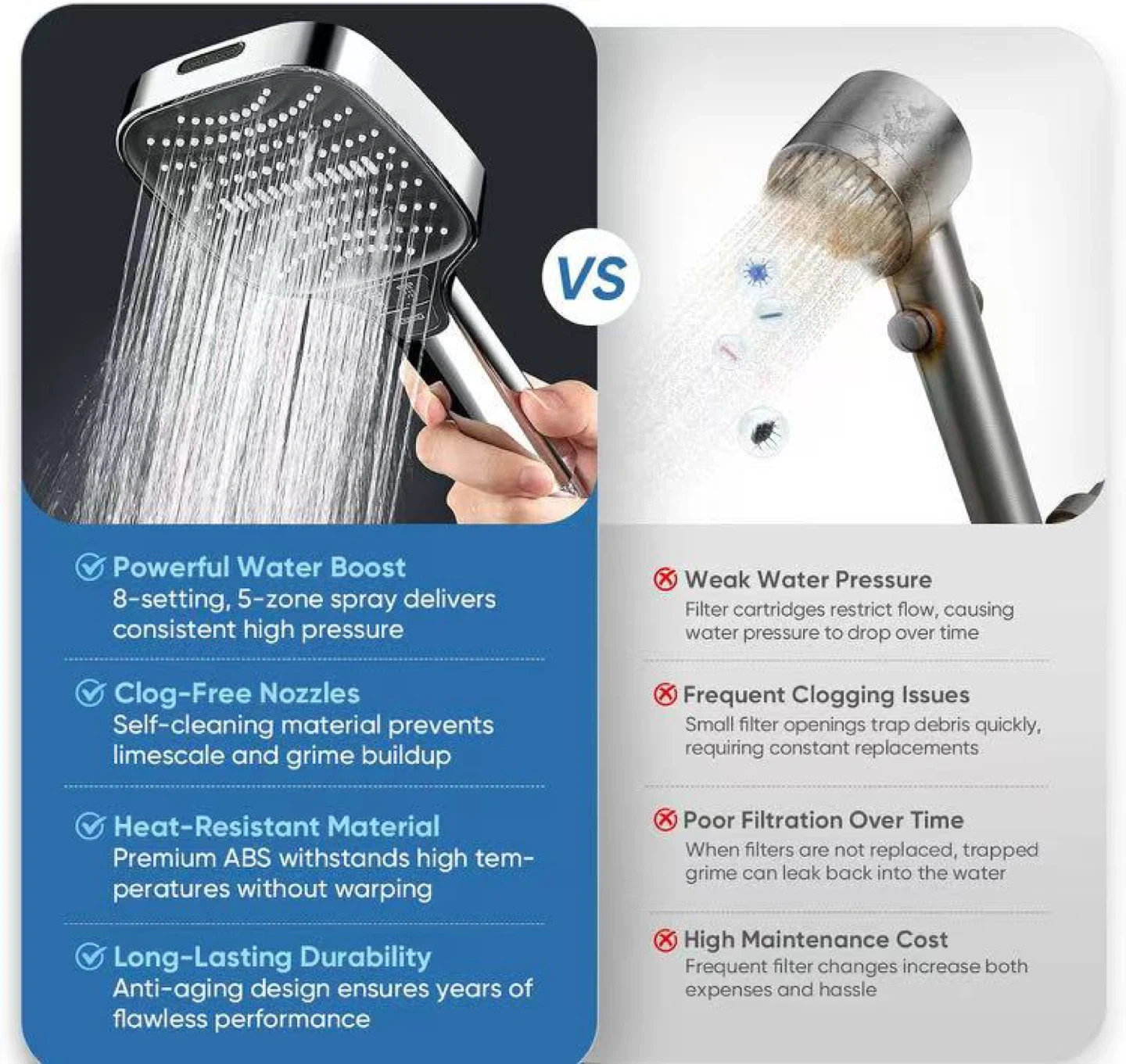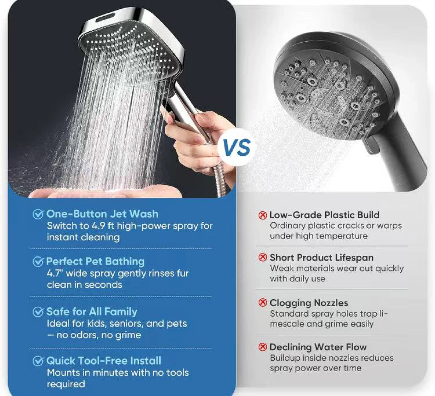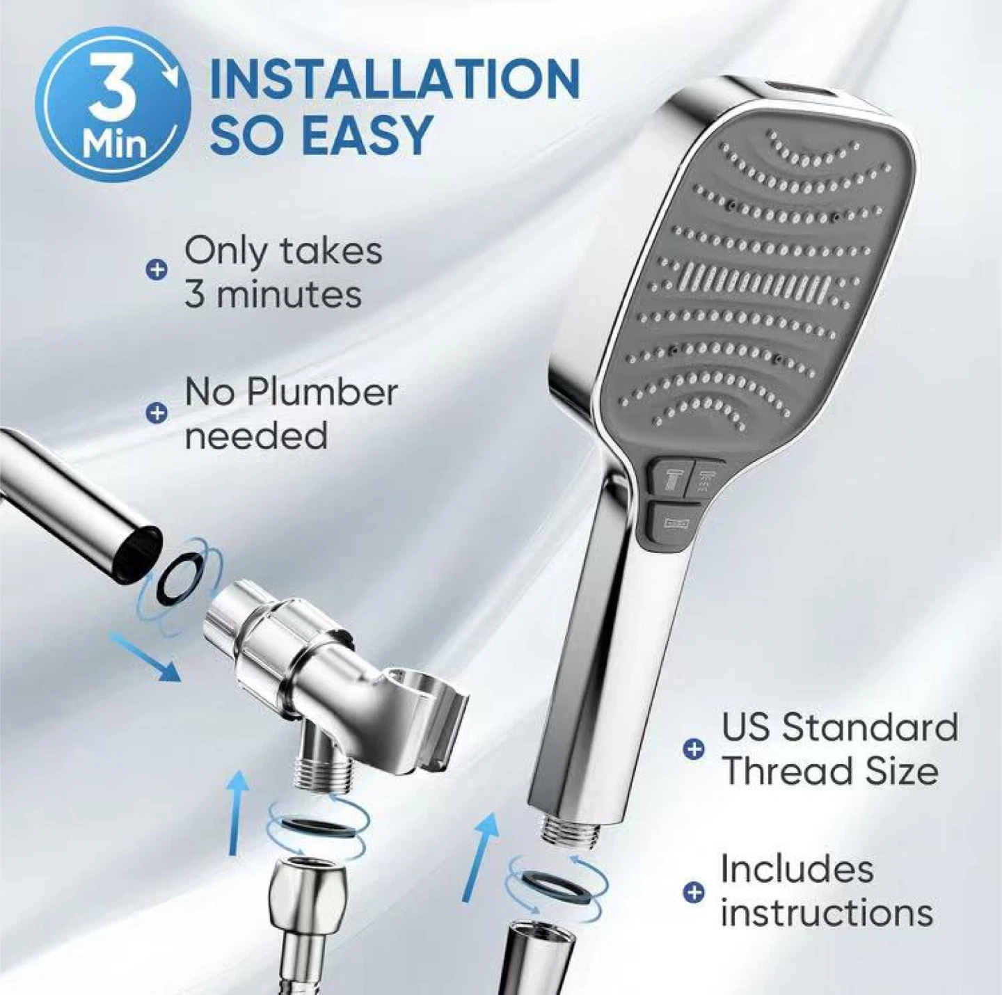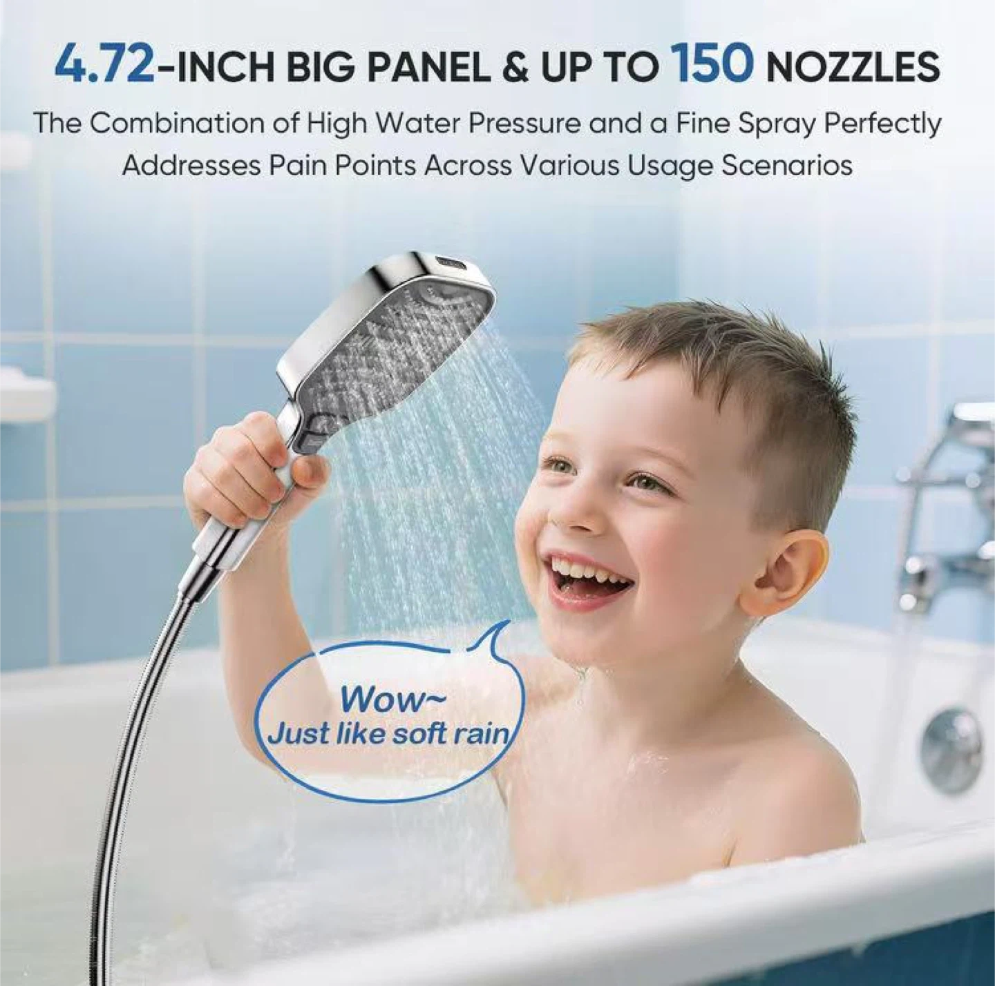 High Pressure 8-mode Handheld Shower Head - Anti-clog Nozzles, Built-in Power Wash to Clean Tub, Tile & Pets, Note:Only Include Shower Head Body,Chrome