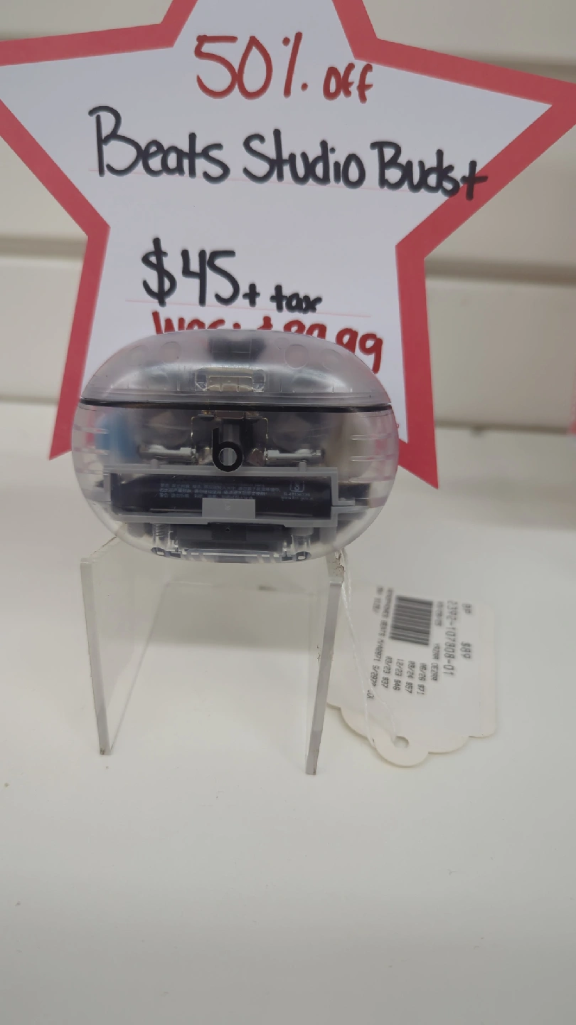 Selling a pair of Beats Studio Buds+. The sign says they were originally $45 plus tax, but the original price was $89 We offer layaway Ask for Alonso Message me for location