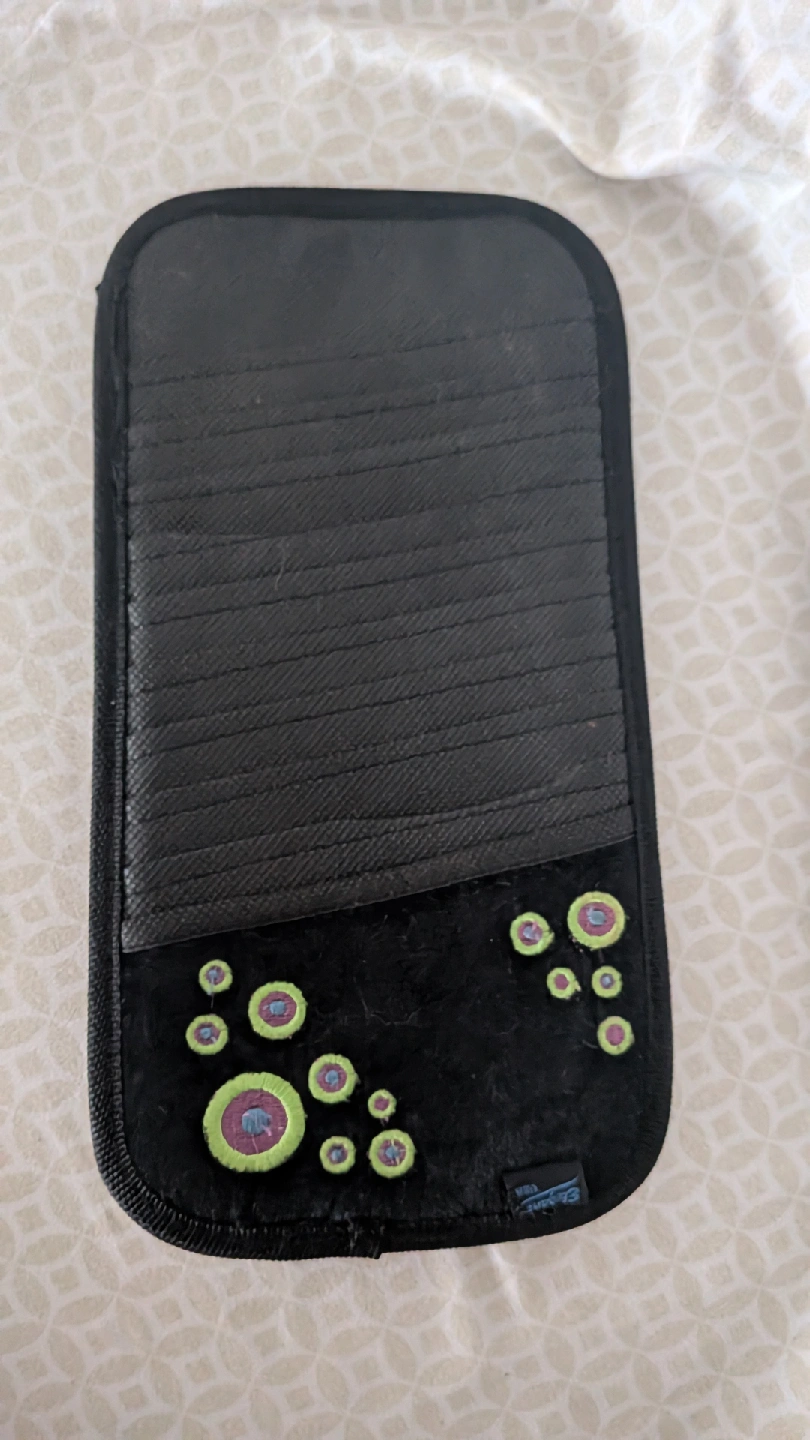 This is a black car visor that holds CDs.