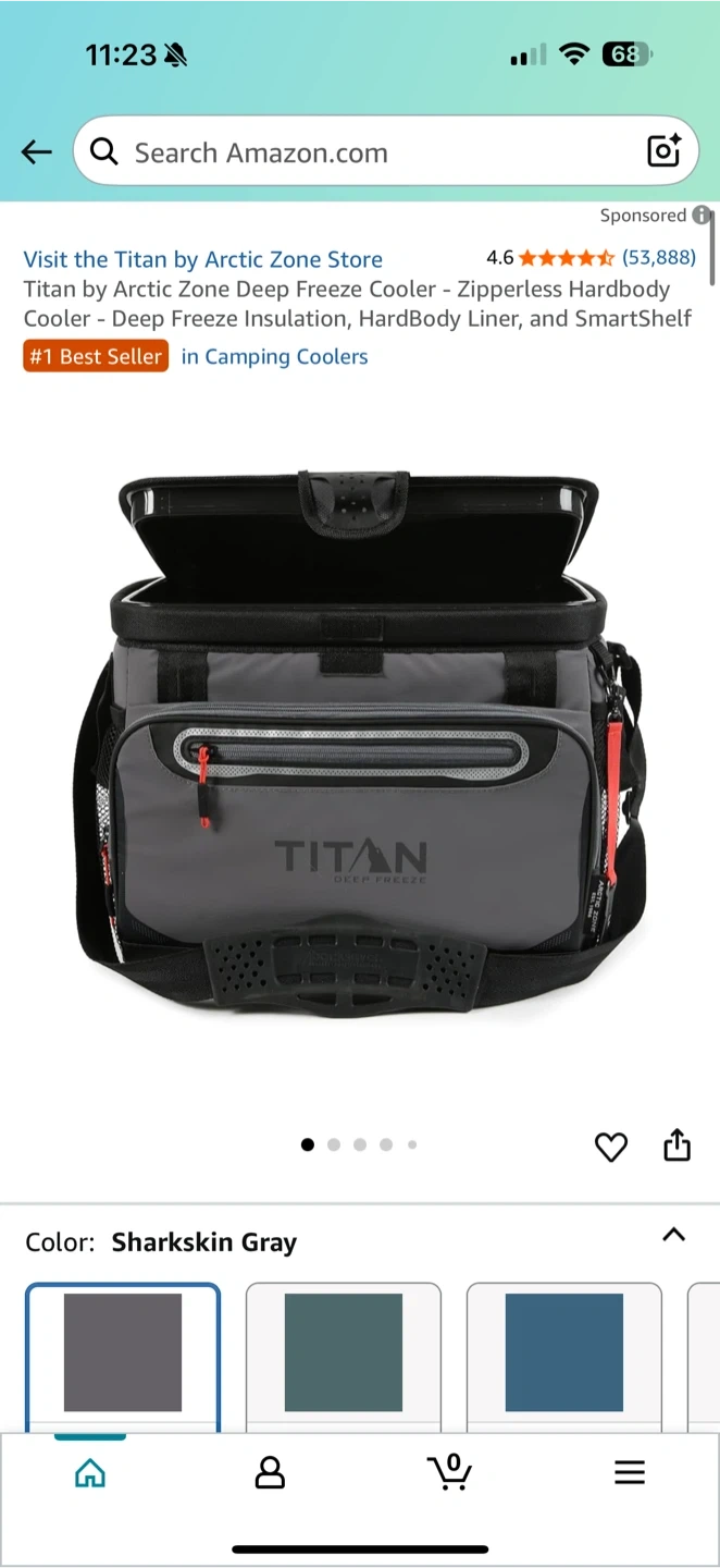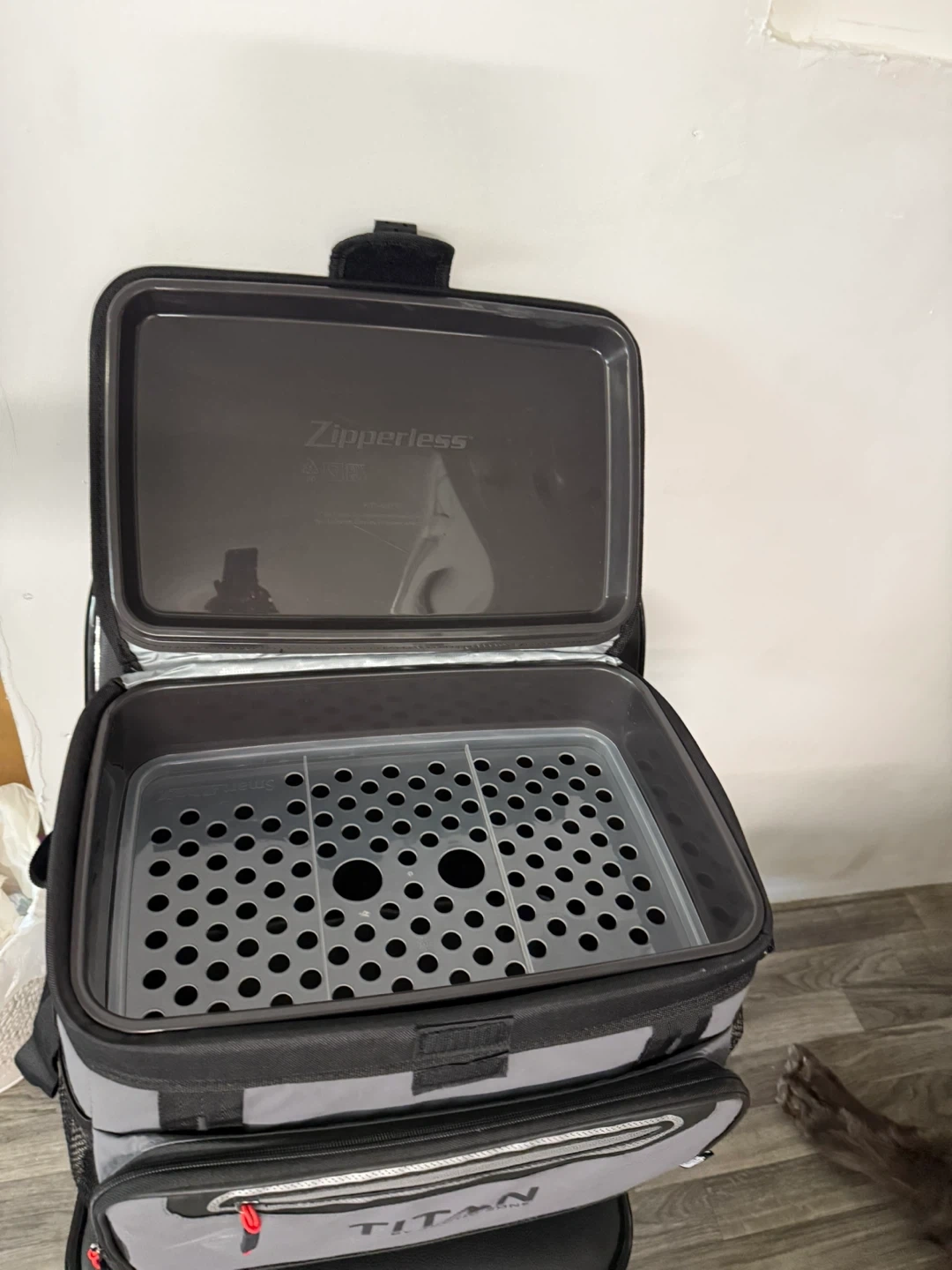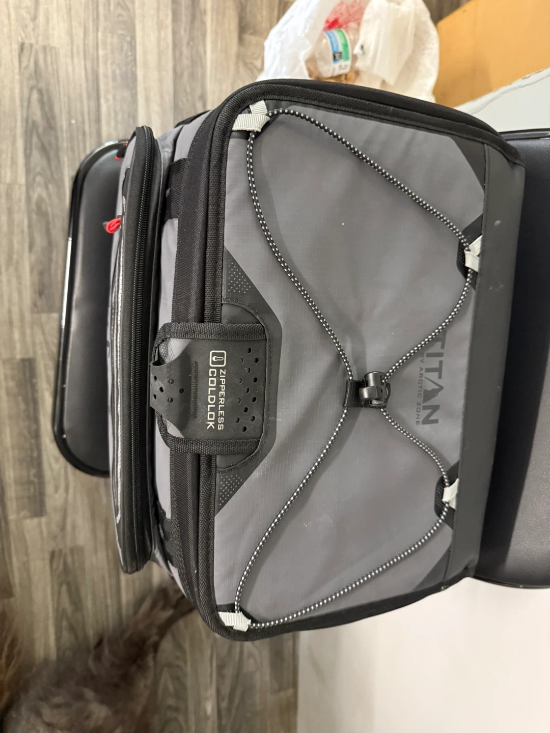 Selling a Titan by Arctic Zone zipperless cooler. It's in good condition and ready to keep your items cool! The cooler features a zipperless design for easy access and is perfect for picnics, camping, or any outdoor activities. It has a gray and black color scheme with the Titan logo prominently displayed.