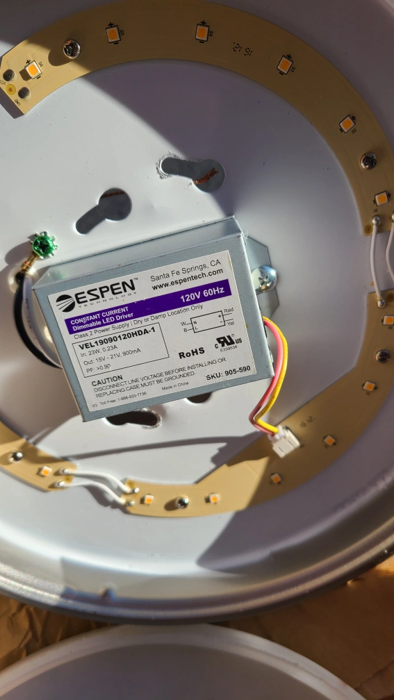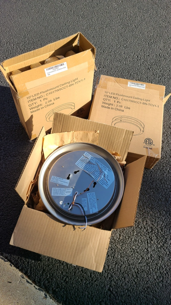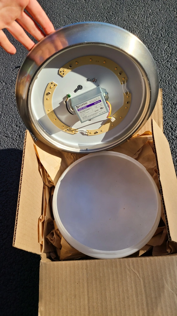Selling an Espan LED ceiling light fixture. It comes with the box. It is white and silver. there are 3 total, price is for one. ask about a deal for all 3!